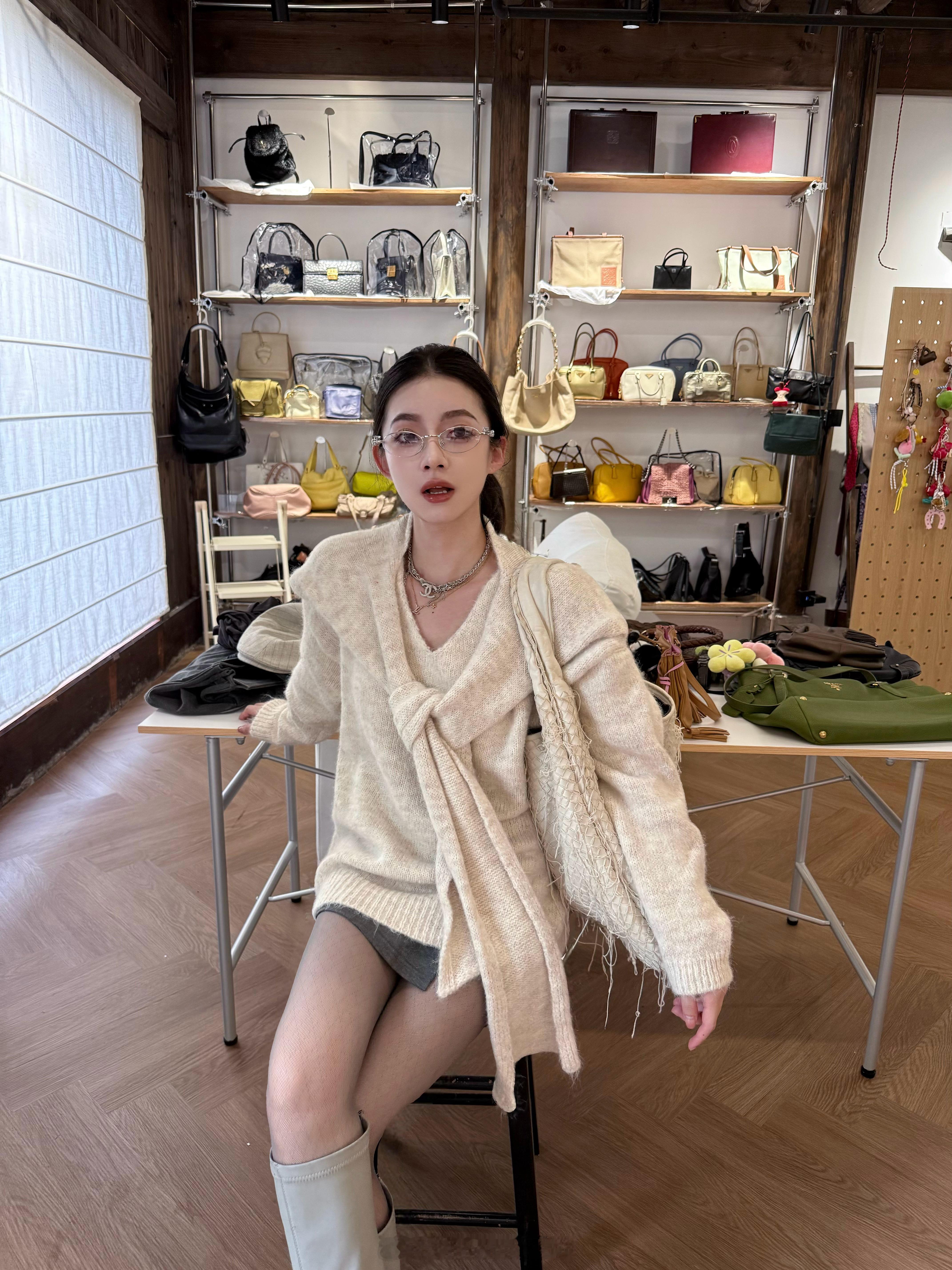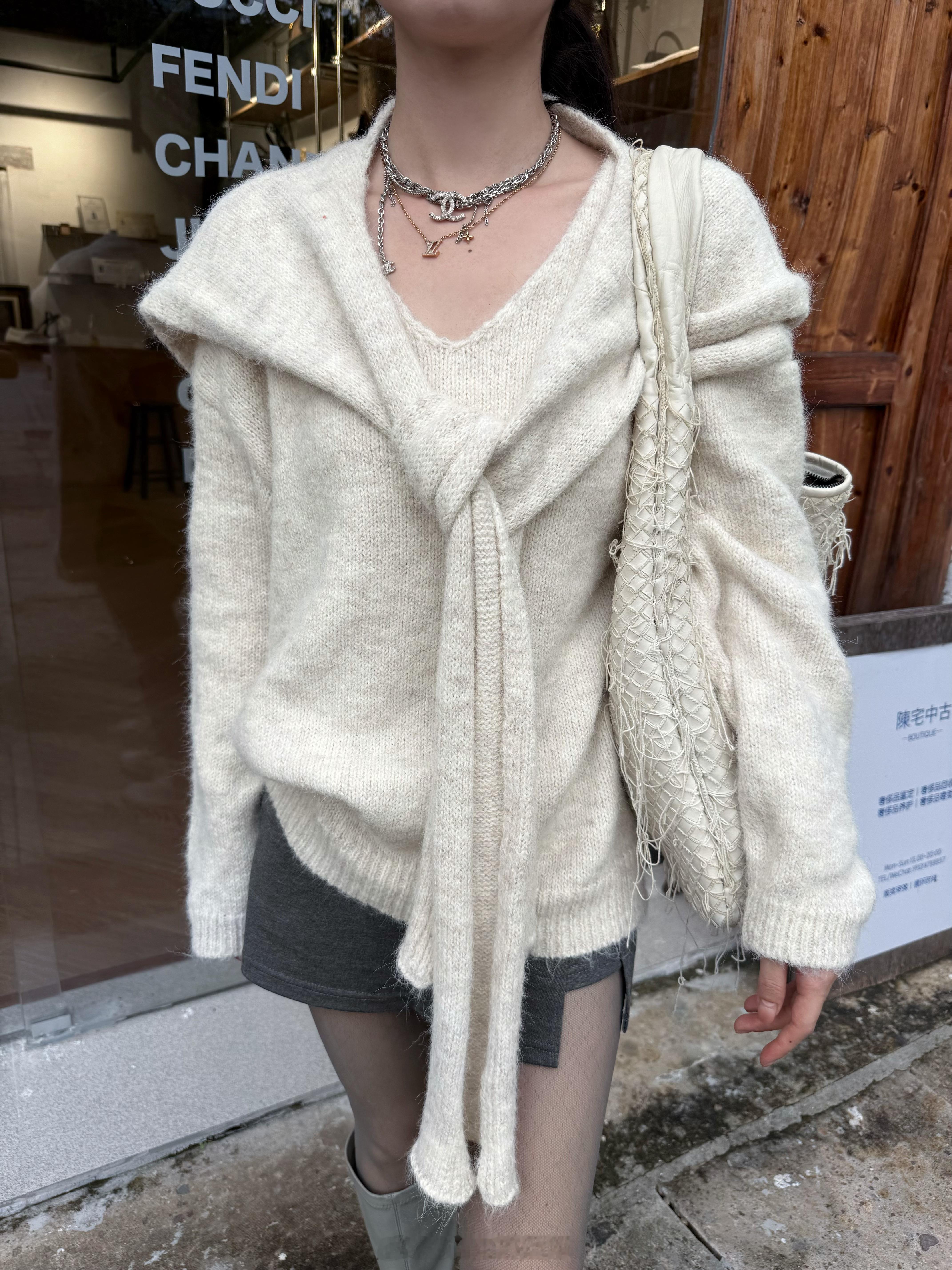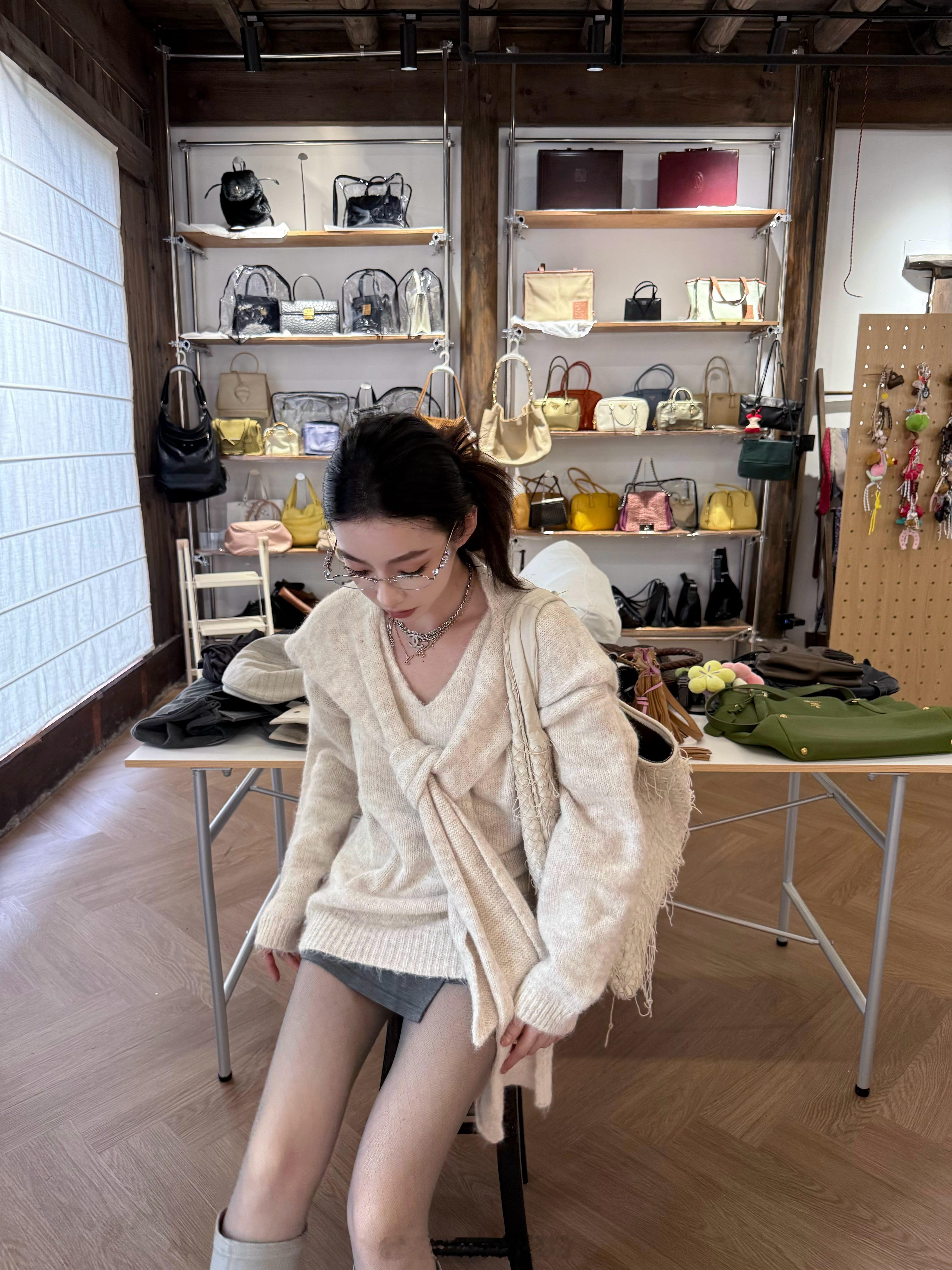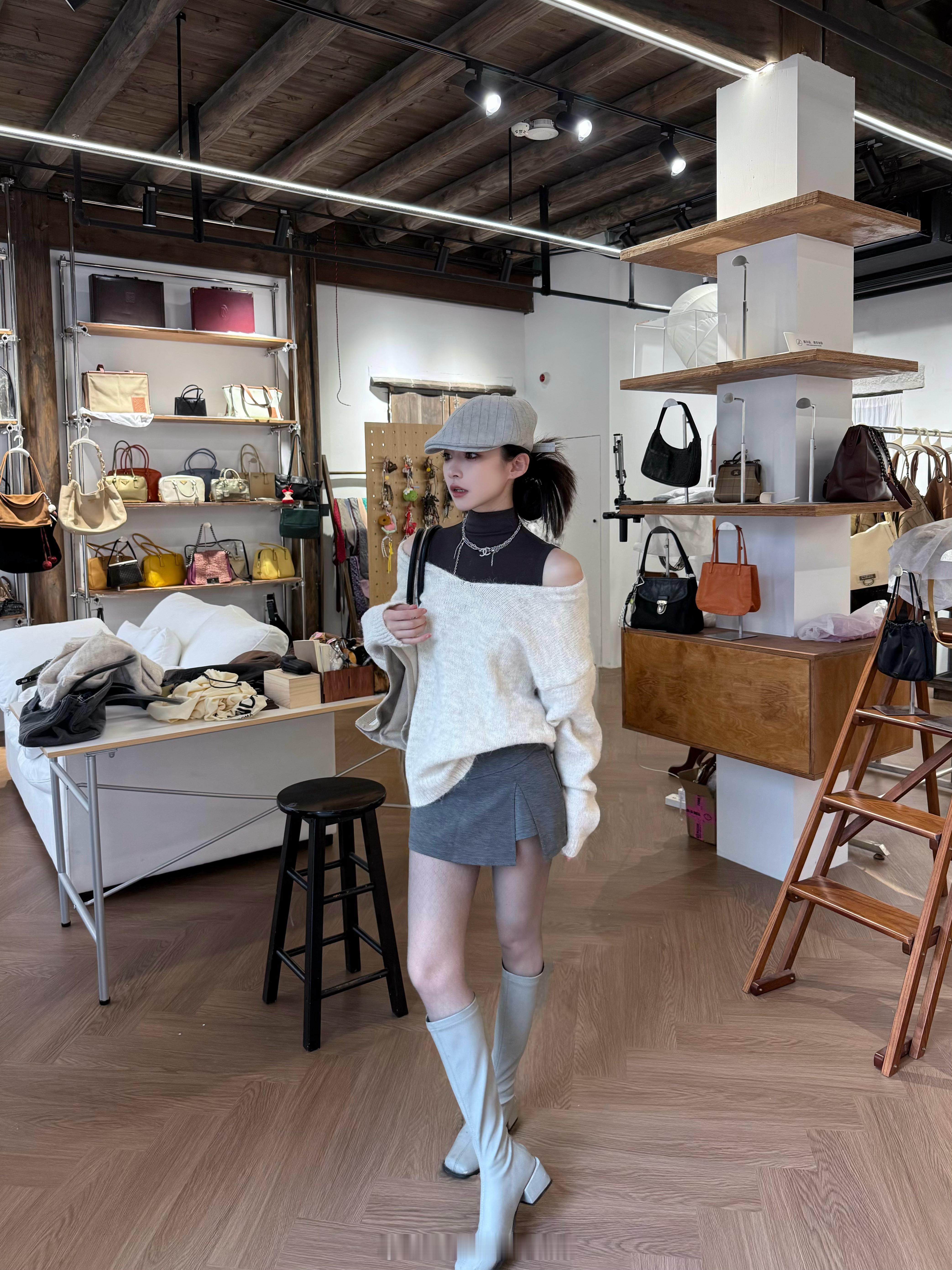 🐚糯米白毛衣露肩or叠穿披肩两种穿法都很洋气!轻轻松get时尚博主感~