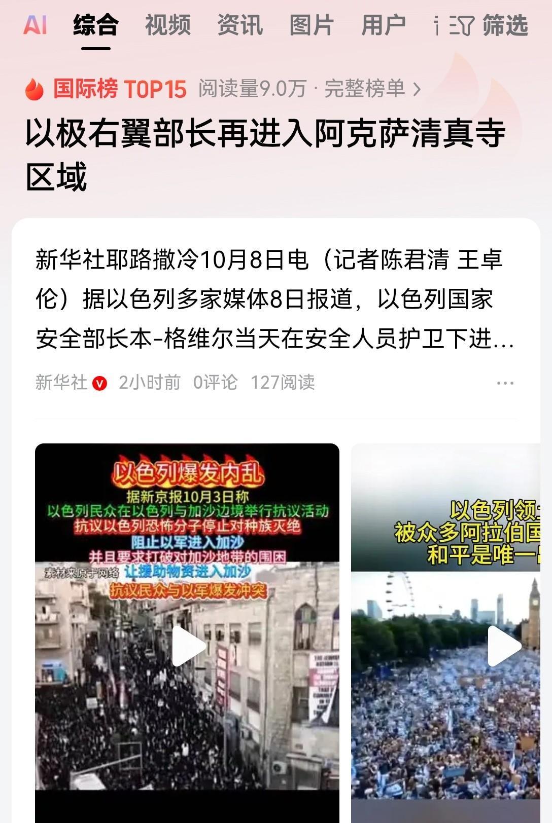 以色列根本就没有任何的信用,特朗普的和平建议,最终会变成一场荒唐的闹剧。 不可能落实的,因为以色列现在的所有举动完全就是背道而驰。 一边嘴里喊着停火,一边继续空袭加沙,这是和平应该有的姿态吗? 最新消息新华社10月8号报道称,以色列国家安全部部长本格维尔,于当天在安全人员的保护下强行进入,阿克萨清真寺区域。 阿克萨清真寺区域本来就是宗教最冲突最敏感的地区! 也是多次巴以冲突爆发的起点。 以色列称呼,这里为圣殿山,伊斯兰教徒称这里为尊贵的圣地。 这是两大宗教共同认可的圣地。 在这里进行各种政治表演都会被视为大不敬! 以色列政府一边说要配合美国进行和平谈判。 而另外一边却持续不断的轰炸加沙,甚至强行闯入有争议的敏感地带。 这不就是故意刺激伊斯兰教信徒的神经吗? 你这到底是推动和平啊,还是激化矛盾呢? 尤其是这个本格维尔,以色列的国家安全部部长! 他是一名极右翼,非常非常仇恨巴勒斯坦人! 这样的政治人物强行闯入阿克萨清真寺,这摆明了就是对伊斯兰教的挑衅! 就这样的态度,你让巴勒斯坦人民怎么和谈呢? 对了,就是这位本格维尔,在环保少女被扣押的时候。 他就跑到监狱去骂那些船队的船员都是恐怖分子。 结果让好几百船员当众驳斥,喊着口号就把他给骂跑了! 现在又强闯伊斯兰教的圣地企图激化局势。 也就是说在这些极右翼的政客心目中停火,那是绝对不可能的。 他们要的就是侵略和强行吞并,而且留地不留人! 这才是他们的战略企图!