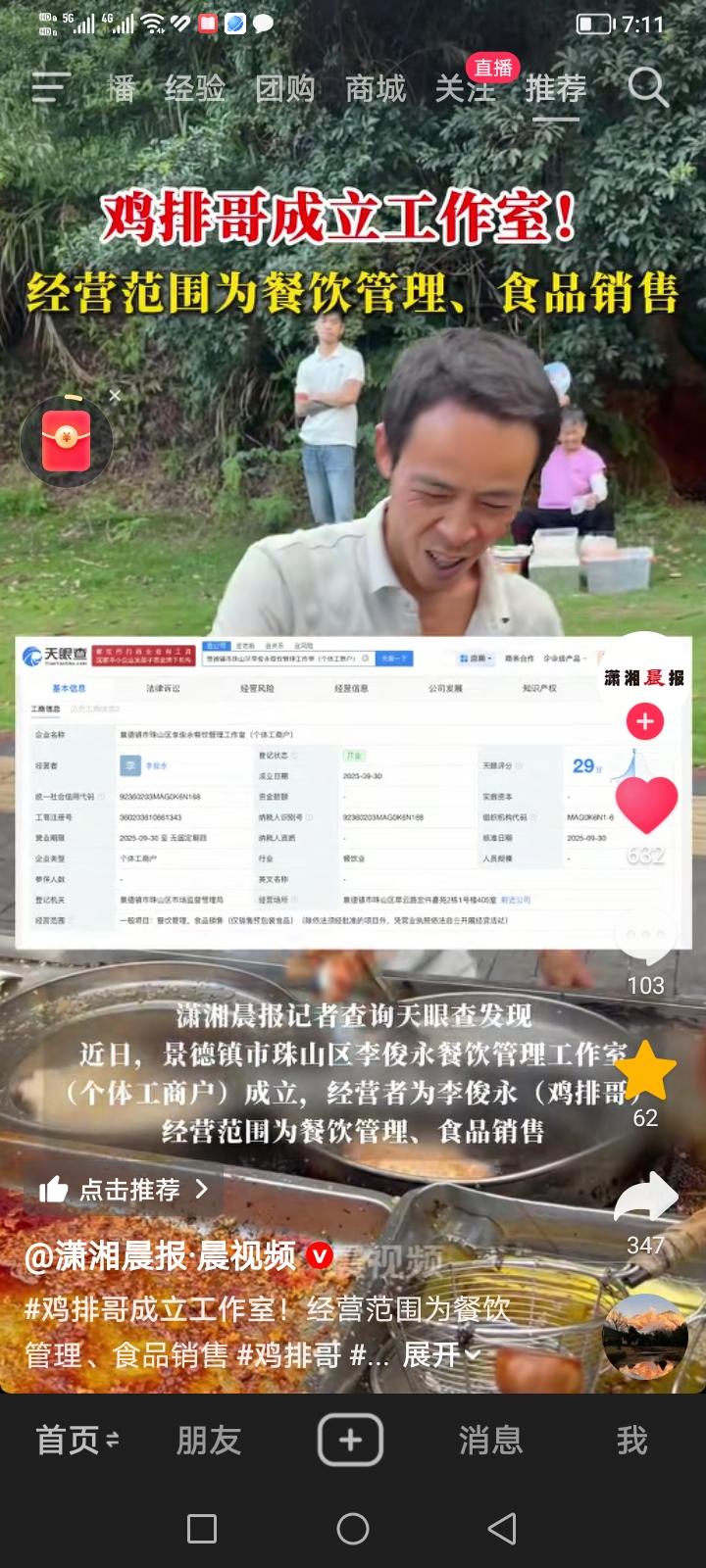 刚刷到一条新闻,景德镇鸡排哥在9月30号成立了工作室,经营范围为食品管理和食品销售。看评论区留言,国人永远是这样,既怕你吃苦,又怕你开路虎。我认为鸡排哥开工作室任何没有问题,你们不能要求别人之前炸鸡排,难道就要求别人永远一辈子也炸鸡排吗?人家是堂堂正正商业行为,怎么不可以?我反倒认为是一些网友的思想过于狭隘了。首先鸡排哥是生意人,现在有名气有人流,抓住这波流量,才是一个合格的商人。如果抓不住,那才是一个失败的商人。只要他经营的产品,质量没有问题就可以了,不要对一个人有太高的标准。而且整个鸡排家族现在有十多个摊位,未来哪怕他只收徒弟的话,也会有更多的摊位,走向正规化规范化是必然的结局。现在成立工作室,只是尽早的开始布局。我们永远不要用圣人的标准去要求一个普通人,永远要记得别人只是一个普通人。鸡排哥 景德镇鸡排哥 景德镇鸡排嫂 网红鸡排哥