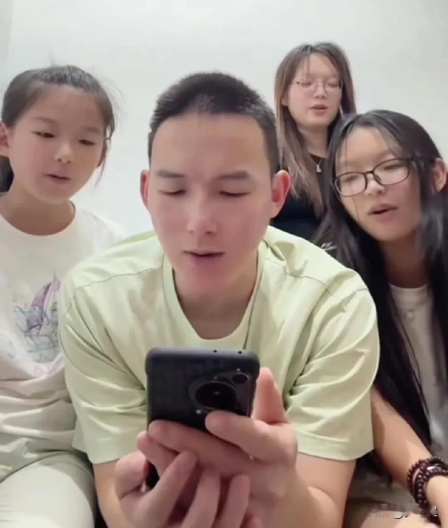 谢浩男,成为队长了! 谢浩男带领三个妹妹唱歌,唱的是王菲的如愿,大妹在后面看歌词,因为她急性不好,二妹唱歌还行,三妹在旁边看着哥哥手机念,哈哈,虽然不是很专业,但是在一起唱歌是多么幸福的事啊,妹妹们多了一个哥哥安全感都有了,三妹和哥哥长的一模一样,太可爱了!