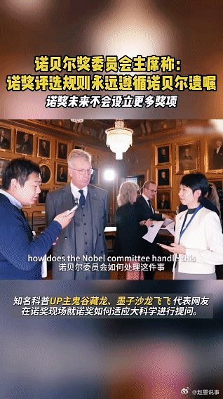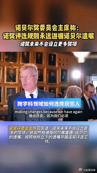 诺奖评选规则永远遵循诺贝尔遗嘱 从宏观量子隧穿摘得2025诺奖物理奖,到网友对跨学科奖项的关注,评委会主席的回应温柔而坚定:诺奖会永远守住诺贝尔遗嘱的初心,不增设奖项,但学科边界的精彩探索,从来都是诺奖眼中的“心头好”。