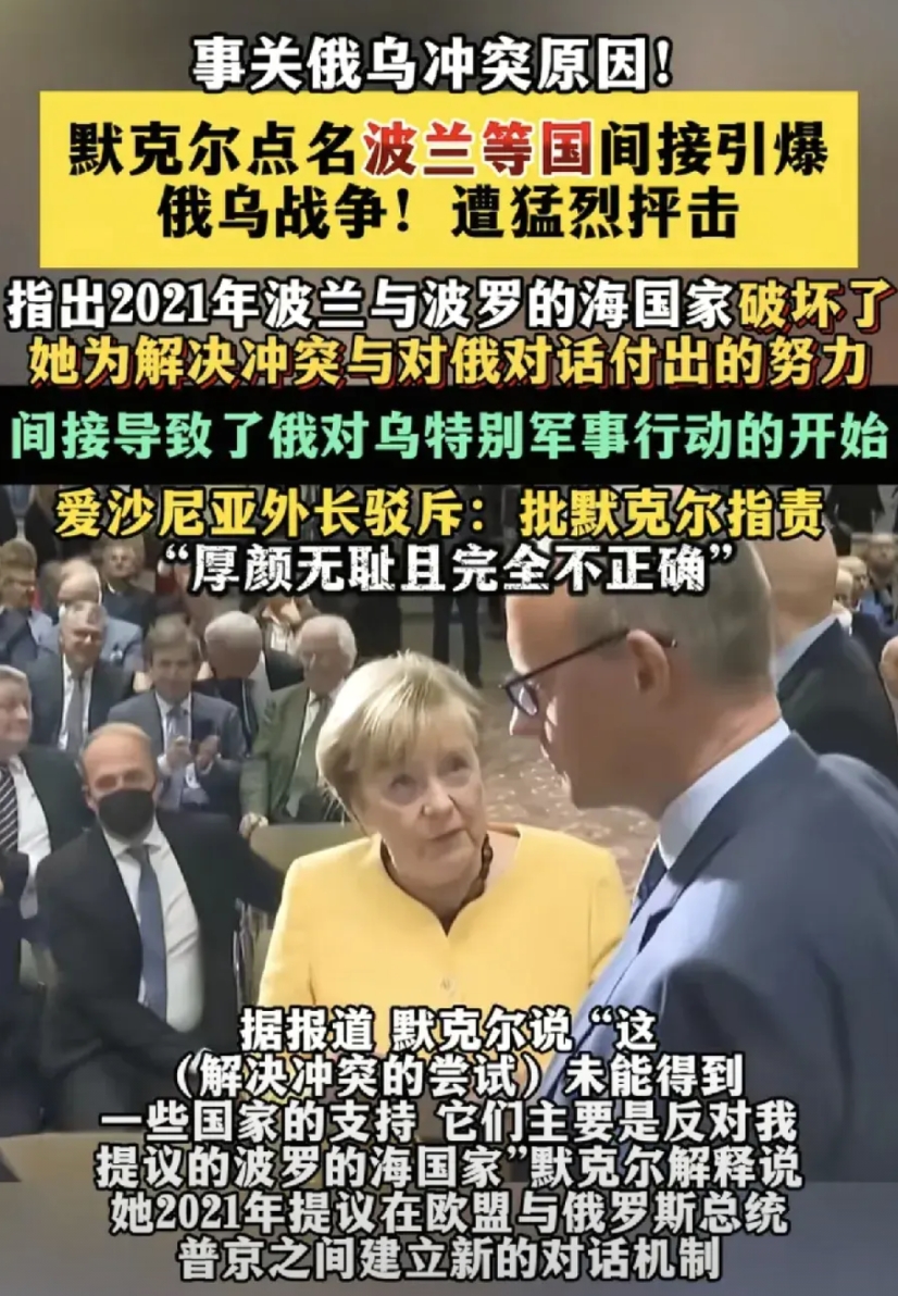 默克尔旁观者清,好好的一个德国,欧盟被波罗的海三国和波兰这个搅屎棍搞得乌烟瘴气,什么误导对话那是真的扯,但北溪管道可是默克尔为德国能源持续有血液打下的基础,即便没有北溪管道,但有波罗的海三国和波兰挡着道,没把俄罗斯怎么样,但把德国搞得乌七八糟的,还有那个什么东方过来的路,德国和东方双向奔赴,也是这几个搅屎棍搞东搞西,现在默克尔借机让他们背俄乌战争的锅,这几个搅屎棍能够背得起吗?同时按照默克尔在德国和中欧的影响,再加上这搅屎棍以前干得缺德事,他们背锅还是很有市场的。