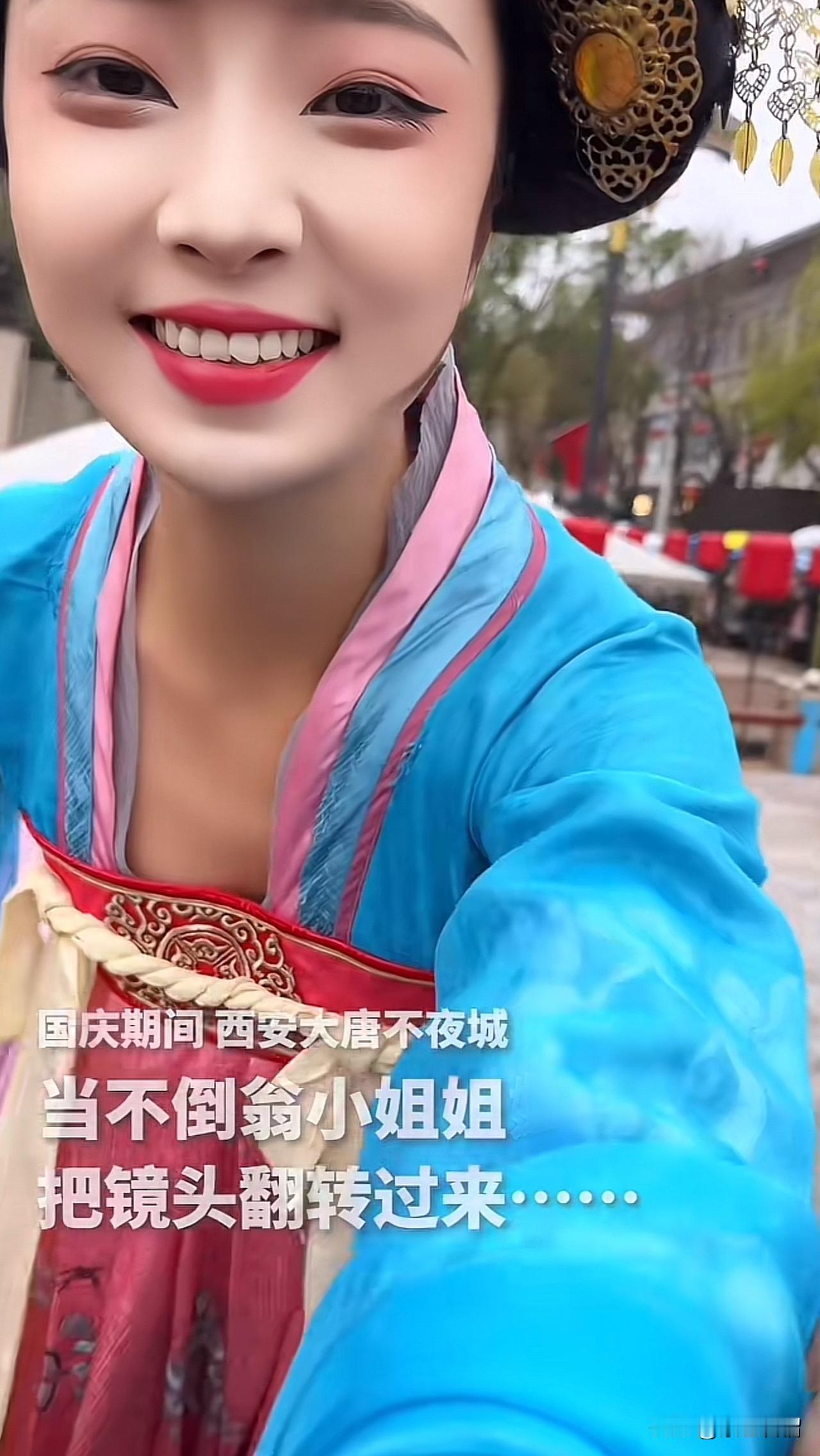 国泰民安在这一刻具象化了。 国庆期间,西安大唐不夜城的不倒翁小姐姐一时调皮,把手机镜头对准了游客,你们猜画面会变成什么样子? 只见观看表演的观众个个都露着笑脸,有的举着摄像头,有的比着心,有的抱着孩子,每一张笑脸都那么灿烂,没有刻意为之,也没有丝毫伪装,每个人都发自内心地绽放笑容。 这画面仿佛在向我们诉说,什么是“盛世中华”,什么叫“国泰民安”。一个国家好不好,看看老百姓脸上的表情便知。 大家觉得这个画面如何呢? (图片素自新华社抖音账号)