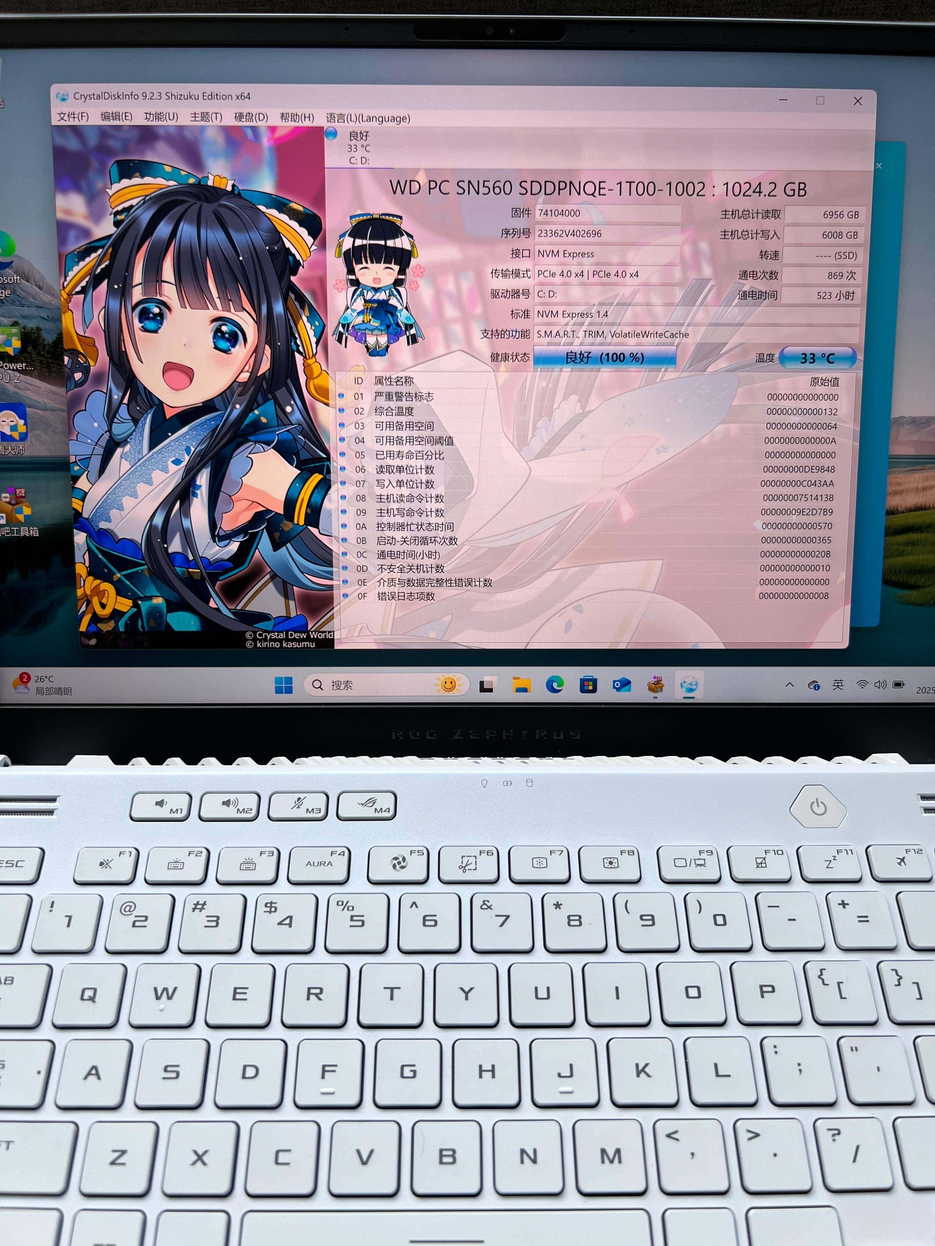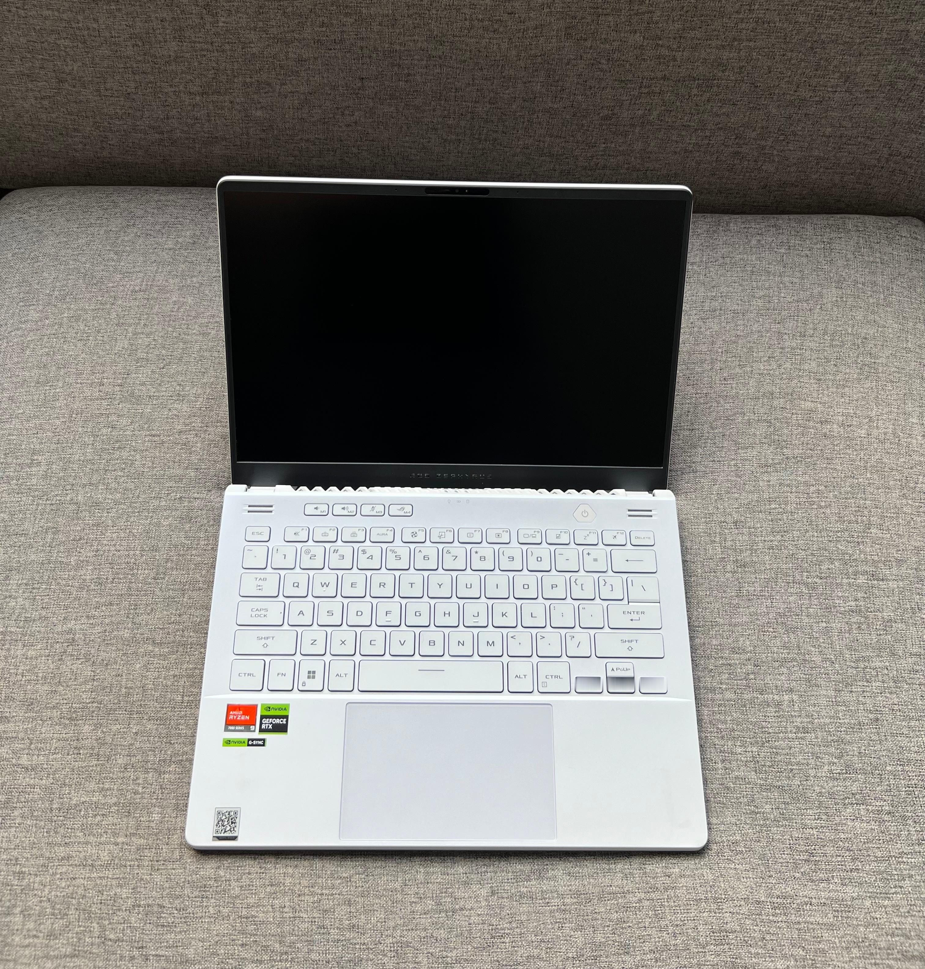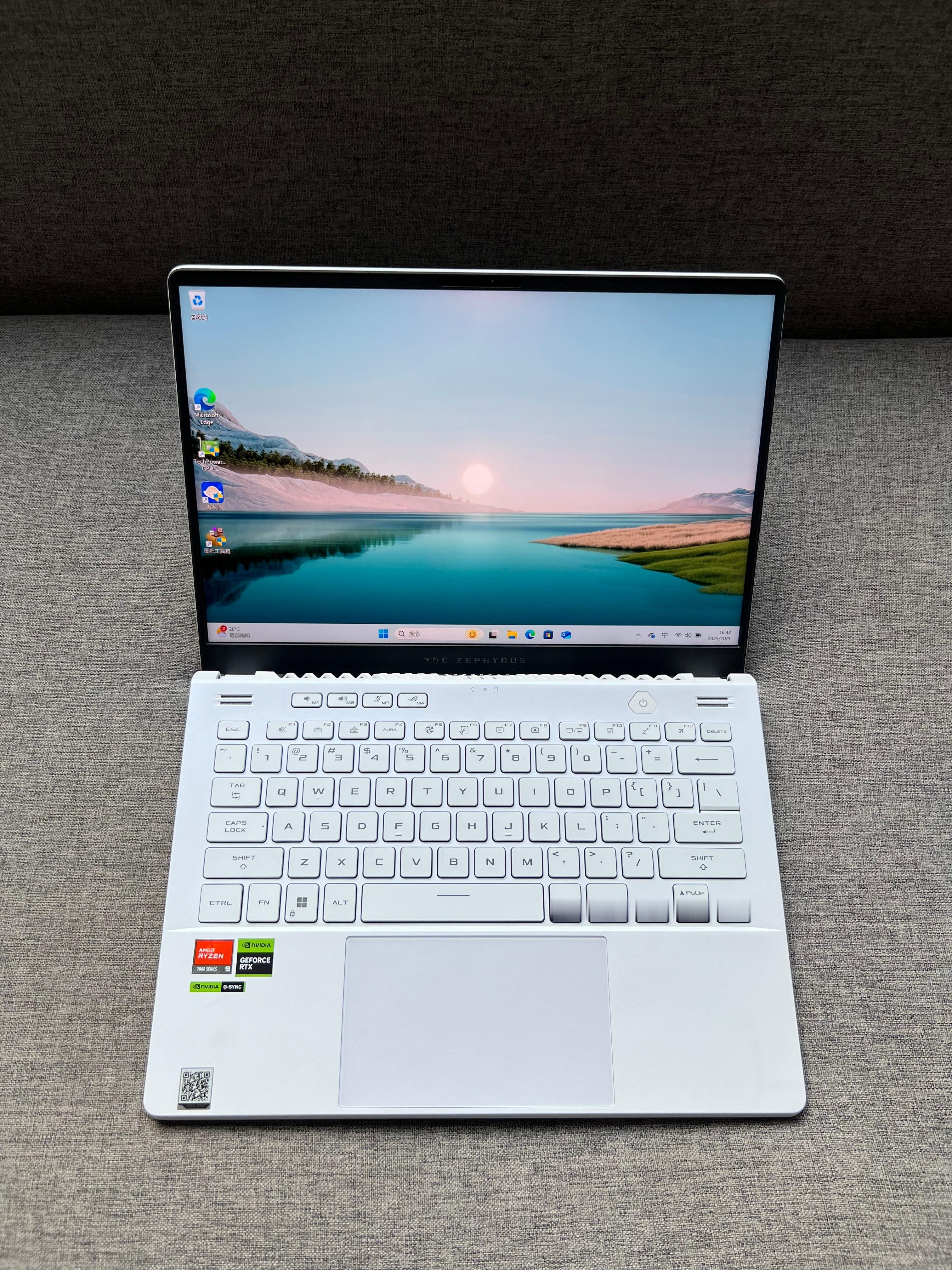 2023款ROG 幻14 原16G运存升级为32G+1TB 经典白 AMD R9-7940hs+RTX 4060 165hz高刷,屏幕轻微氧化,外壳轻微使用痕迹。电池效率90,,带原装充电器,全国联保至2026-01-31,6199