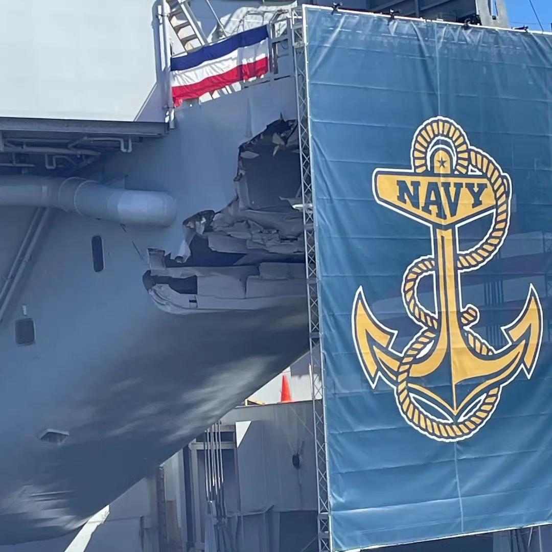 没想到,地球上最强大的舰队,还没打过什么像样的仗,就这么老死了!帝国海军的遮羞布:太侮辱人了! 美国航母动态可见,杜鲁门号航母慌乱中发生碰撞,8个月的时间过去了,居然还未维修好! 只见他们的总统来视察时,就在航母旁边举行仪式,美国海军只能用一张遮羞布盖住撞坏的地方! 从图上清晰可见,损坏之处清理了一些碎片,把毛边打磨光滑,然后用一层白漆刮了一层腻子。 也就是说,从损坏开始至今8个月了,还没有排队进入维修船坞。 现在的美军连基本的战损维修都做不到,更别说战时了,被制裁后更难修,很多设备需可能要从东大购买。 虽然说有11个舰队,但常年能动的只有4至5艘航母,其他基本上不是趴窝就是在等排队修。 感觉最关键的还是没钱了,海军是最耗费最高的军种,各种维持都是天价,一旦钱跟不上,这些巨舰腐烂的速度是非常快的。 没想到上一个世纪最强大的舰队,还没打过什么像样的仗,就这么老死了!