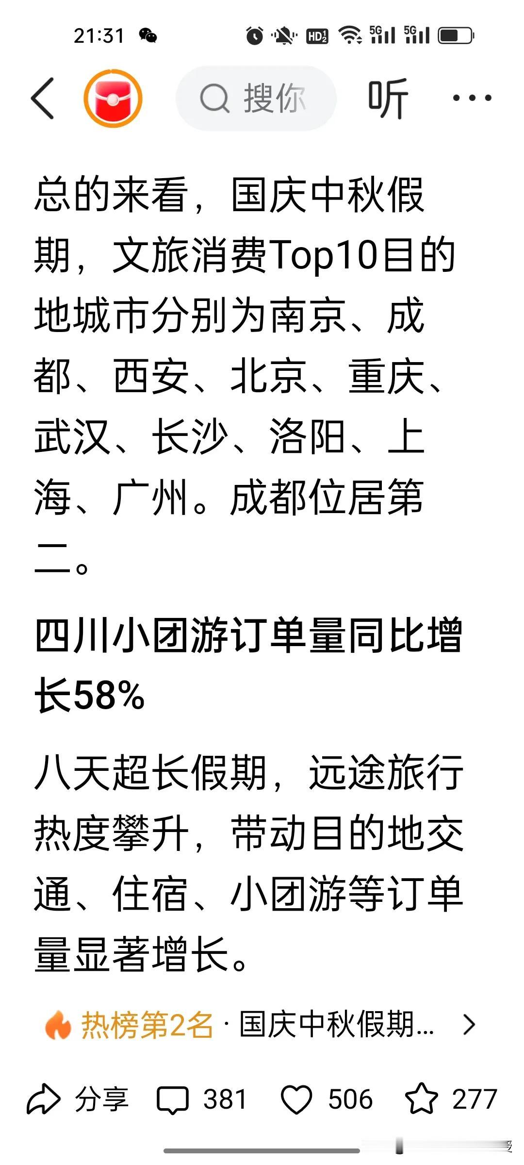 南京真的今年是国庆旅游消费目的地第一啊!前两天南京的朋友告诉我,本地人已经不敢出门去景点了,外地游客太多了,中山陵,明孝陵,玄武湖,总统府,栖霞寺等等景点全部爆满。 南京去年在国庆节游客接待量是全国第三,刚刚看到美团旅行发布的消息,今年竟然在毫无宣传之下南京荣升第一,苏超是有一部分功劳的,然而更多的是“六朝古都”南京的人文环境吸引游客络绎不绝前来打卡,这份藏不住的魅力,既是历史底蕴与现代活力的碰撞,也让南京成为了这个国庆最让人向往的“诗与远方”。