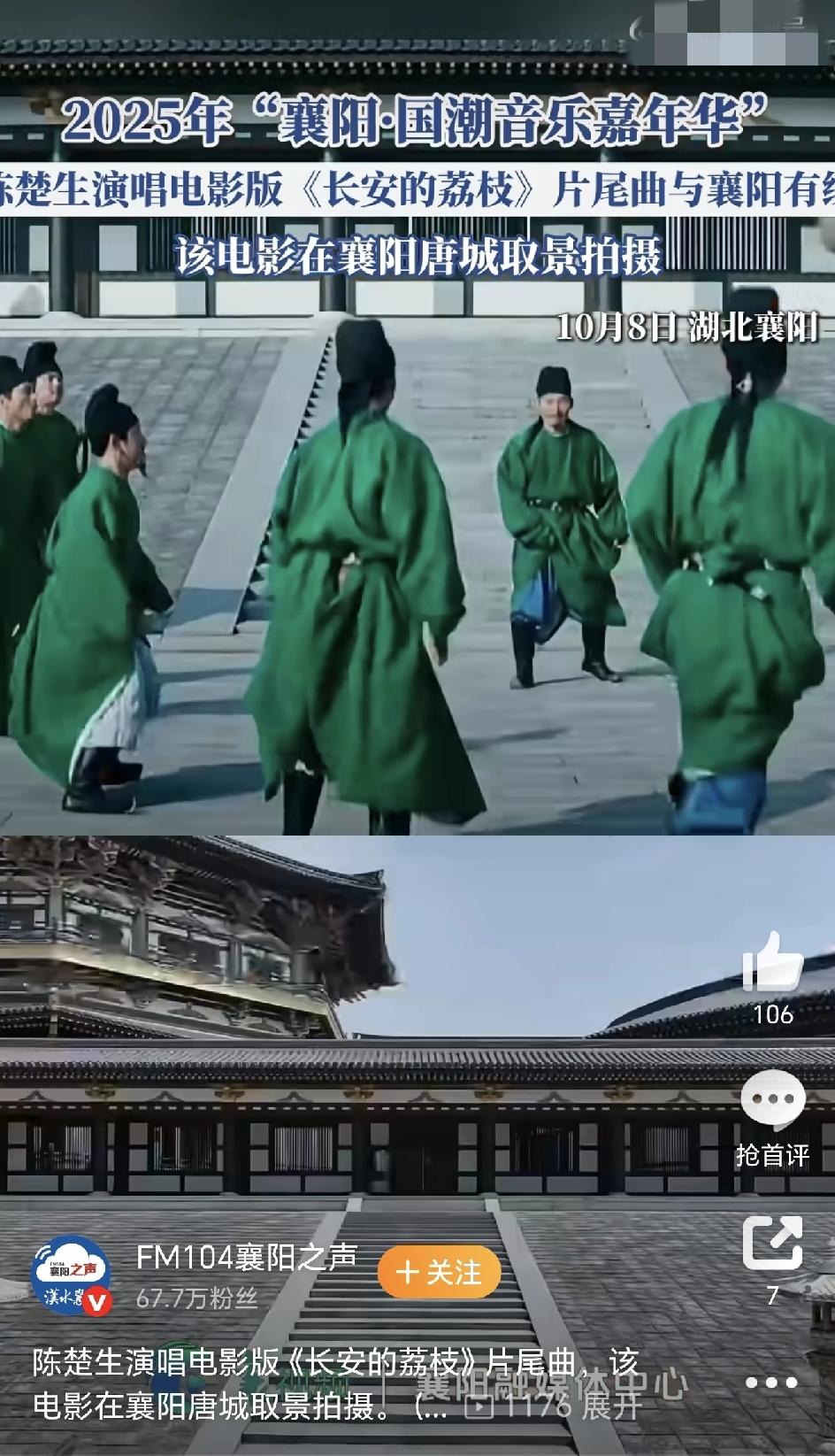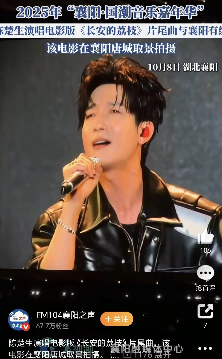 陈楚生十一长假最后一场音乐节落幕,竟然是《庙堂之外》的电影《长安的荔枝》取景地襄阳! 襄阳官媒发声,陈楚生盛赞襄阳的牛肉面,连着两天吃了牛肉牛杂面! 歌手之后。不知道会有多少文旅局和陈楚生成为了互相关注,陈楚生去哪里参加音乐节或是演唱会都会受欢迎吧[大笑]! 今晚的音乐节《庙堂之外》是必须有的,结尾唱了《那个远方》,这可是演唱会的压轴曲目,看来他也在为这个长假做一个结束,明天又是一个新的开始! 接下来会是《至少今天很快乐》的合体演唱会了!