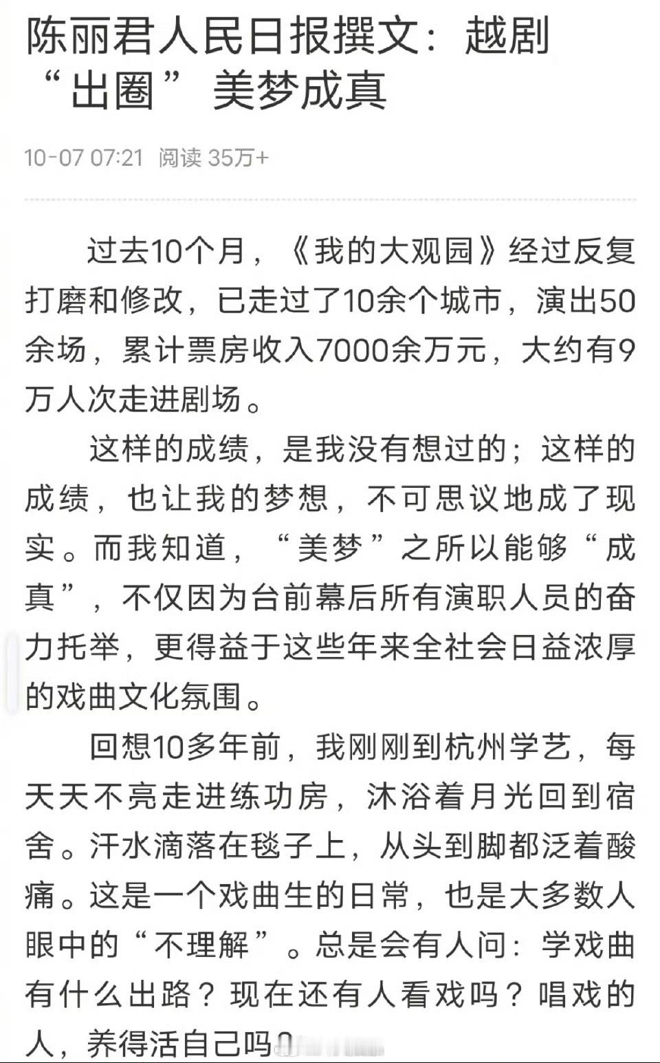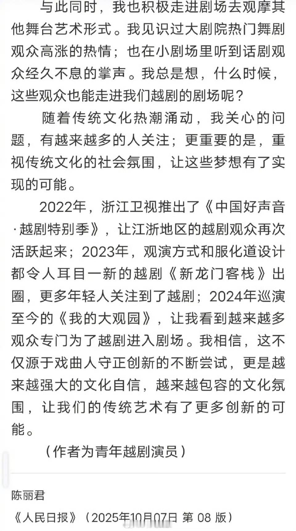 陈丽君第六次在人民日报发表署名文章:越剧“出圈”美梦成真