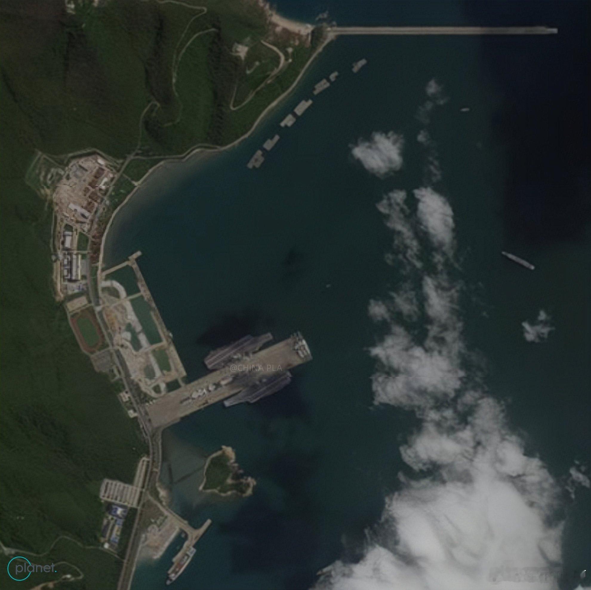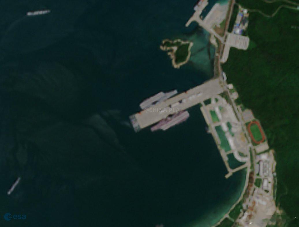 10月8日,躲避台风回港后的福建舰和山东舰又回到了三亚港口
