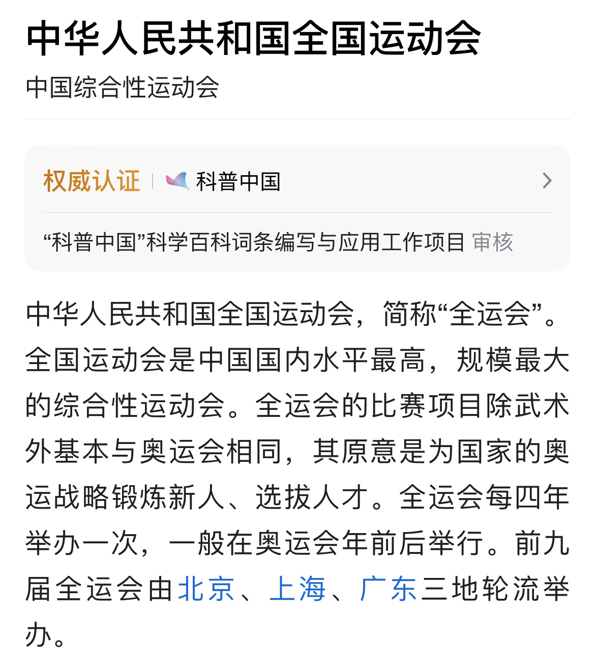 全运会是中国国内水平最高,规模最大,最权威的综合运动会。