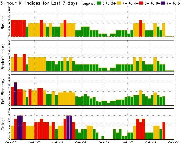 【地磁扰动达到超强地磁暴水平】 【空间天气事件】 ++++++++++ !![红]色警报!! ++++++++++ 北京时间2025年10月9日0时43分,地磁扰动达到超强地磁暴水平,为KP=9 磁纬约40度以北(黑龙江大部、内蒙古东部、北疆)地区需要注意夜空中可能会出现的极光现象,但还需要3小时平均值的监测结果 数据:NOAA-SWPC 发布时间:2025年10月09日01时05分27秒