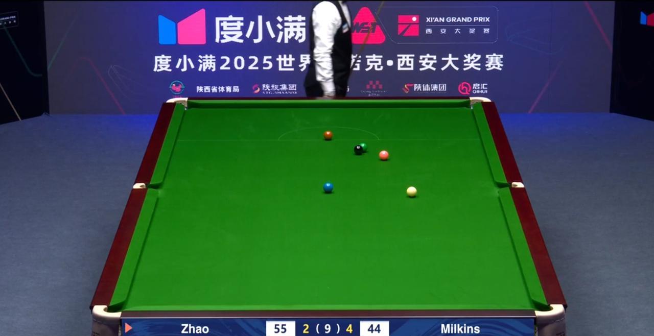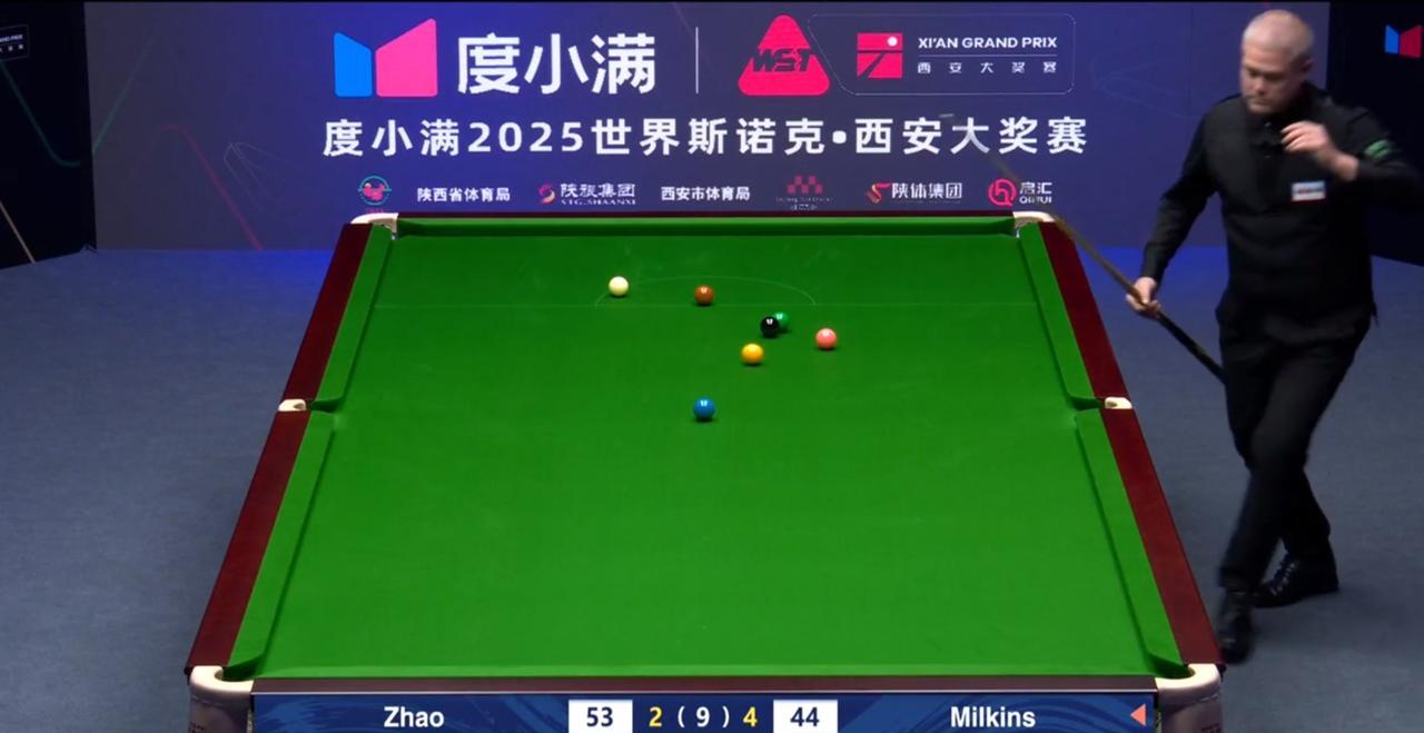 严重怀疑米尔金斯这杆黄球是故意的,以他的水平再怎么样也不至于打成这样的效果。看起