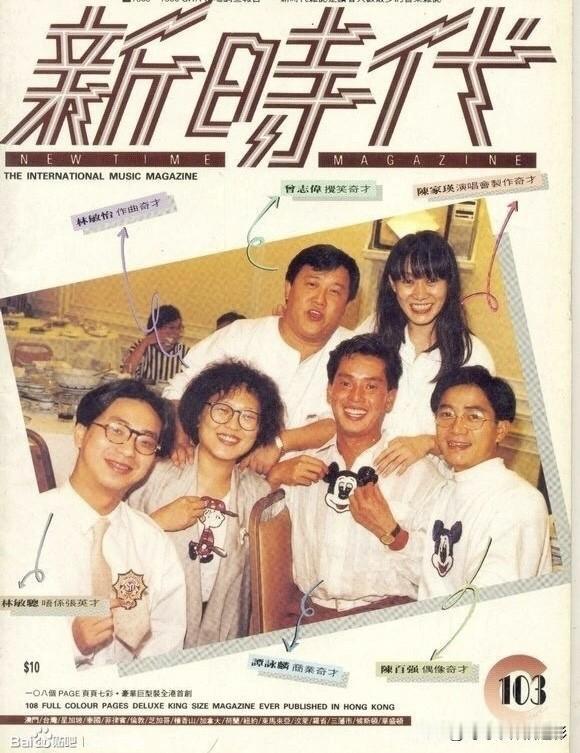 陈百强把米老鼠穿成了青春密码!白色T恤上的卡通图案,像从童话里蹦出来的小确幸,衬
