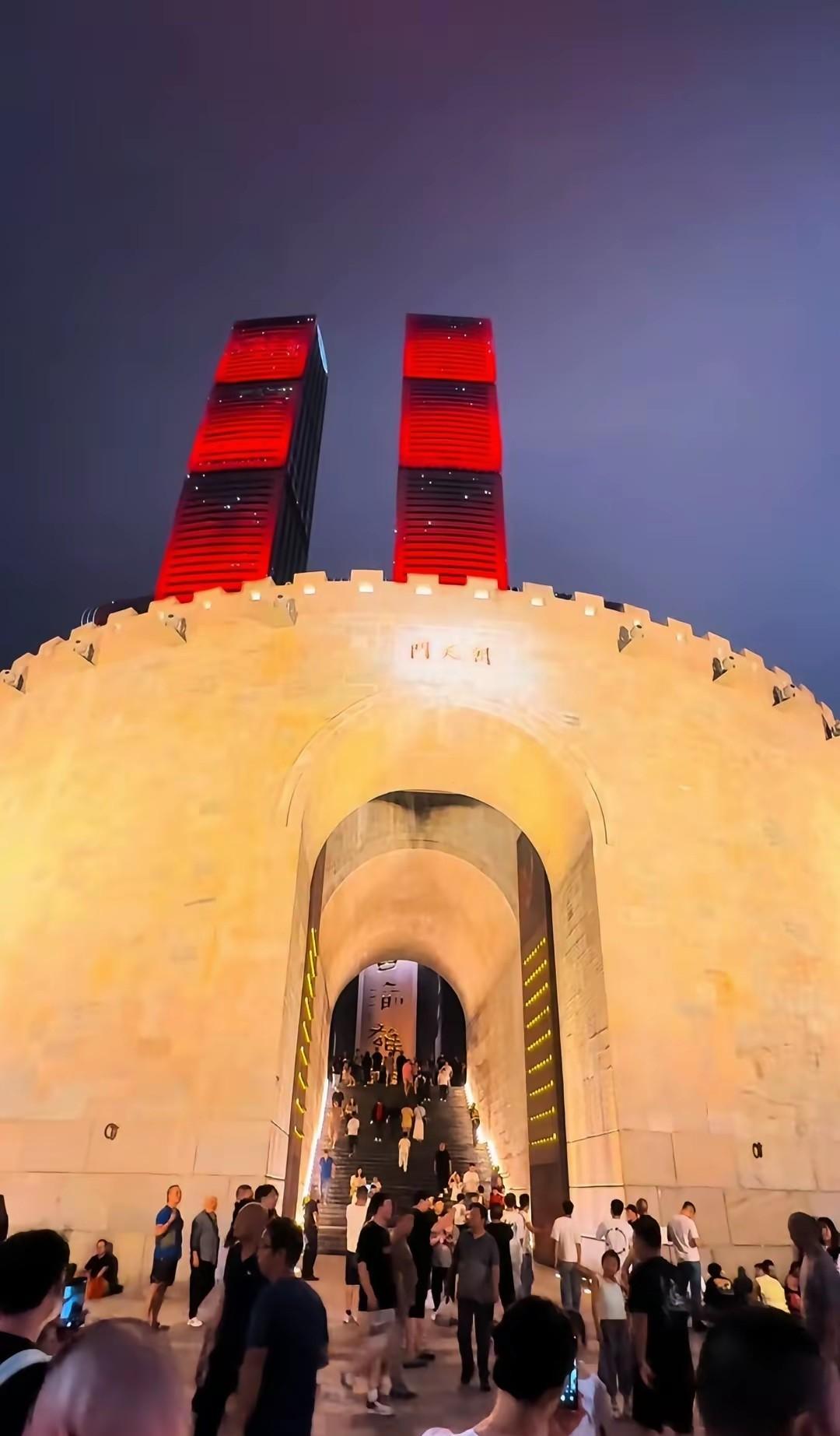 #朝天门打卡地# 朝天门城门修好了,真的太值得打卡!站在城门外,高大古朴的城门仿佛让人穿越时光,深邃的门洞满是历史感,拍照超有穿越时空那味儿。旁边仿古建筑也相当出片,和洪崖洞有得一拼,感觉它会成为下一个火爆景点。 不过这朝天门广场之前可是有“黑历史”。年初重新亮相时,过高的城墙挡住观江视线,被网友狠狠吐槽。好在历时9个月改造,在原有广场铺了两层约40厘米高的台阶成观景台,现在大家不用踮脚就能看两江汇合,观光体验直接拉满。