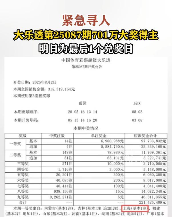 “这就是命啊!”10月9日,上海,一彩民花了42元买了一张大乐透彩票,谁知却意外中了一等奖,奖金高达701万元,然而如今2个月过去了,眼看着已经到了最后一天兑奖期,彩民却迟迟不现身!网友:要是我中了彩票,连一天晚上都等不及。 相信很多买了彩票的人都有过这种经历,那就是买完之后就守着彩票开奖的时候,生怕自己错过了赢大奖的机会,可没想到竟然有人在过了2个月后都没想起来这张彩票,简直不可思议! 据彩票站点表示,这位彩民是在上海奉贤区购买的一张“7+2”,价格为42元的复式票,没想到就是这张彩票却意外中了一等奖,奖金701万元。 8月2日,这期彩票开奖之后,按理说第二天就可以去领奖了,可没想到这个大奖却一直没人来领取,正常来讲彩票的领奖期只有2个月60天左右。 而这次恰好赶上了国庆期间8天假期,从10月1日到10月8日这几天是没法领奖的,所以兑奖截止日期就成了10月9日,也就是说今天就是最后一天。 如果这位彩票大奖得主还没有现身来领奖的话,那彩票就要视作放弃领奖处理了,701万元的奖金也要纳入彩票公益金,这也让很多网友着急不已! 毕竟谁都不理解,这700多万元可不是一个小数目,可没想到大奖得主却这么能坐得住,莫非真的是不在意这些钱不成吗? 不过也有网友猜测可能是彩票已经不小心被大奖得主弄丢了,所以才迟迟不能兑奖,这种情况如果遇上了,说不定三天三夜都睡不着了! 信息来源:《上海701万彩票大奖仅剩1个兑奖日:得主尚未现身 体彩中心发寻人信息》大皖新闻