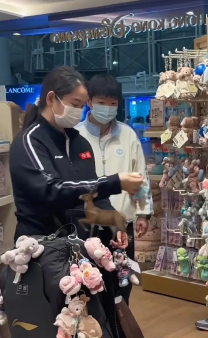 莎莎和佳佳昨天在机场逛玩偶商店[大笑],不知道的还以为她俩来搞批发的。别看现场一个比一个霸气,私下他俩就是可爱的小姑娘。女孩子对玩偶饰品的喜欢是刻到骨子里的。佳佳看上再让莎莎帮选一个,莎莎指定选蓝色的。希望莎莎奥运会拿了单打冠军,好好做一个可爱的乖萌萌。好好享受生活。