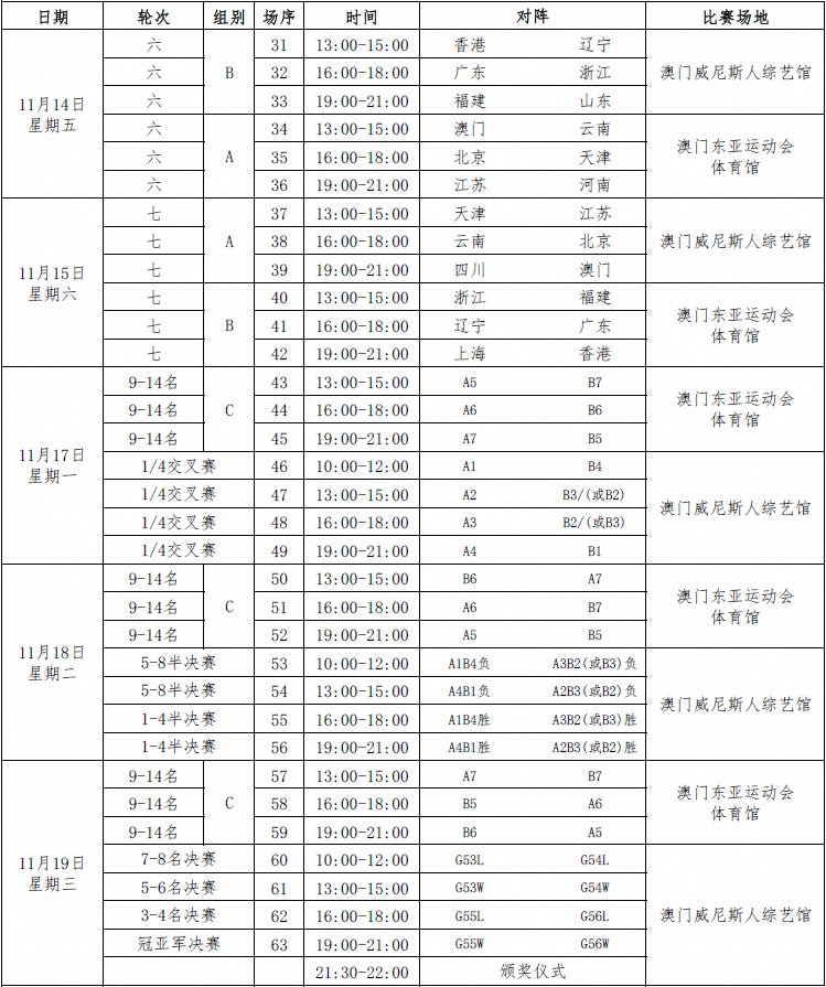 全运会女排成年组赛程
