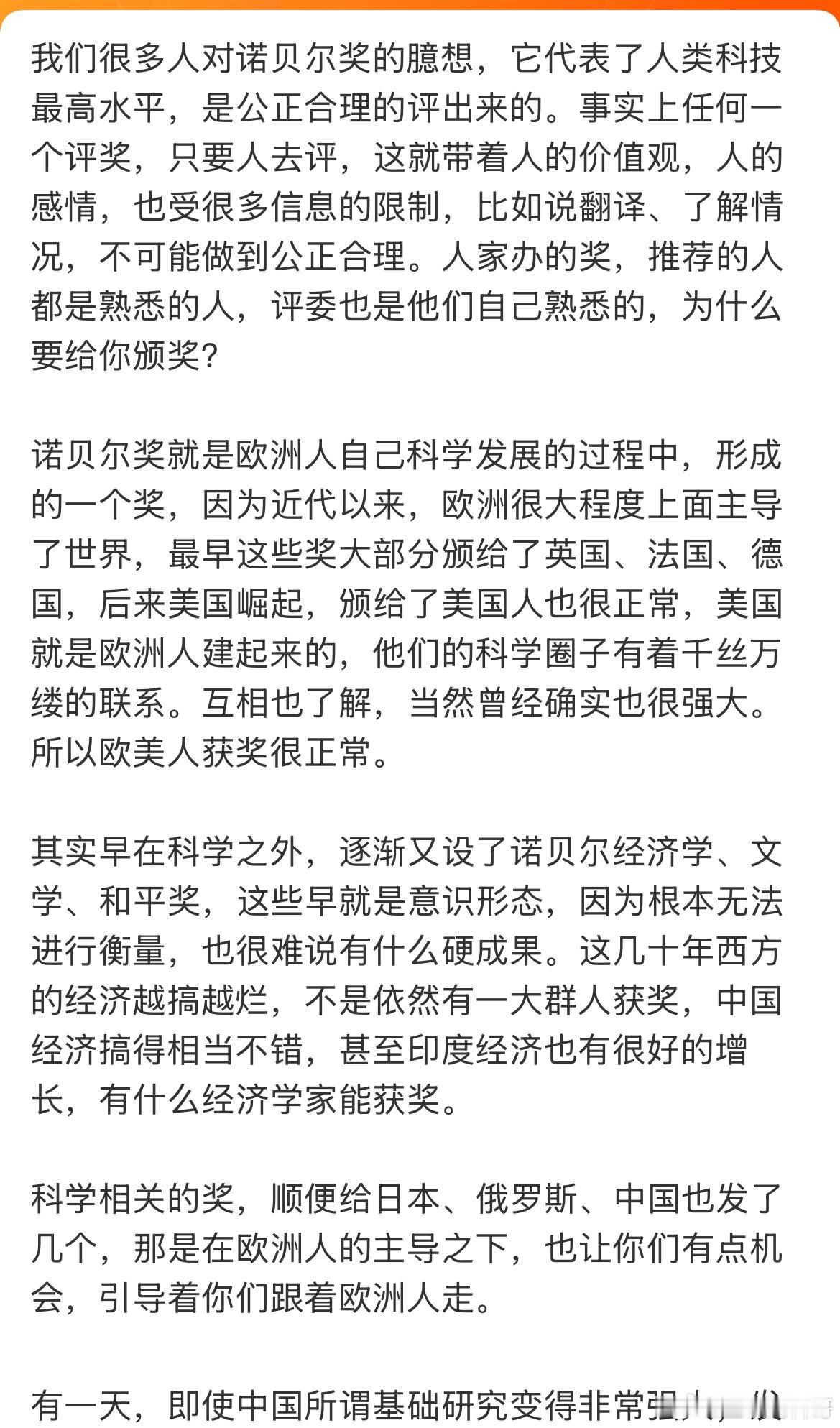 专家项总对诺贝尔奖的认知,真通透!看清了诺贝尔奖背后的真相!很多人纳闷为啥我们的诺贝尔奖总是老美的零头?我们以后能得到更多诺贝尔奖吗?这就是臆想!这是老美的阴谋!