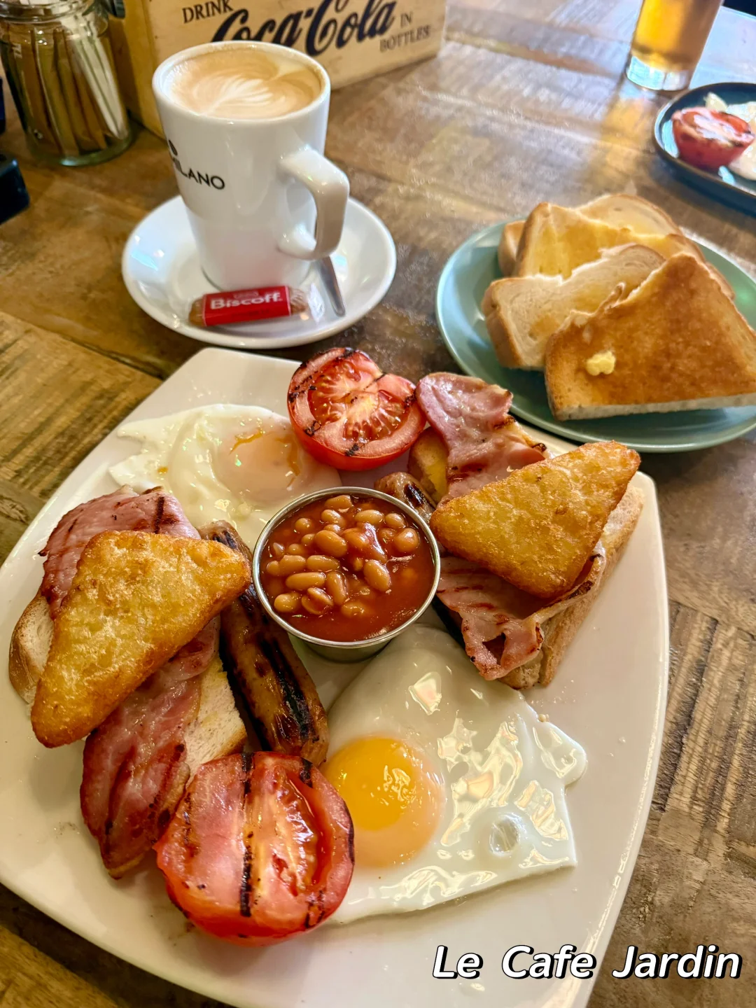 在小镇商业街旁,它家的全英式早餐配的面包超好吃!是烘焙坊新鲜烤出来的那种——外皮微脆、里面松软,涂好了黄油直接上来的,香气直接拉满!(不过香肠淀粉量有点过高hh)