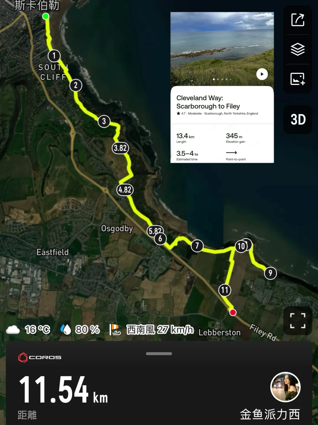 克利夫兰之路集“荒原+海岸线”于一体,而它的最后一段从 Scarborough 到 Filey,约13.4km,是整条路线中最经典、也最容易完成的部分,一路悬崖、草坡和无敌海景海浪相伴(刚离开Scarborough还能看到城堡遗迹)是无车党与徒步初学者都能轻松完成的“海岸线入门路线”。虽然路线总体平缓,但部分地段在潮湿天气会变得湿滑,建议穿防水防滑的登山鞋,风大时也要注意悬崖边安全。