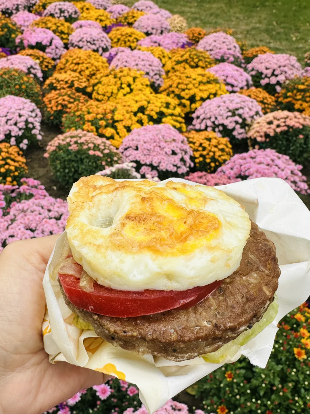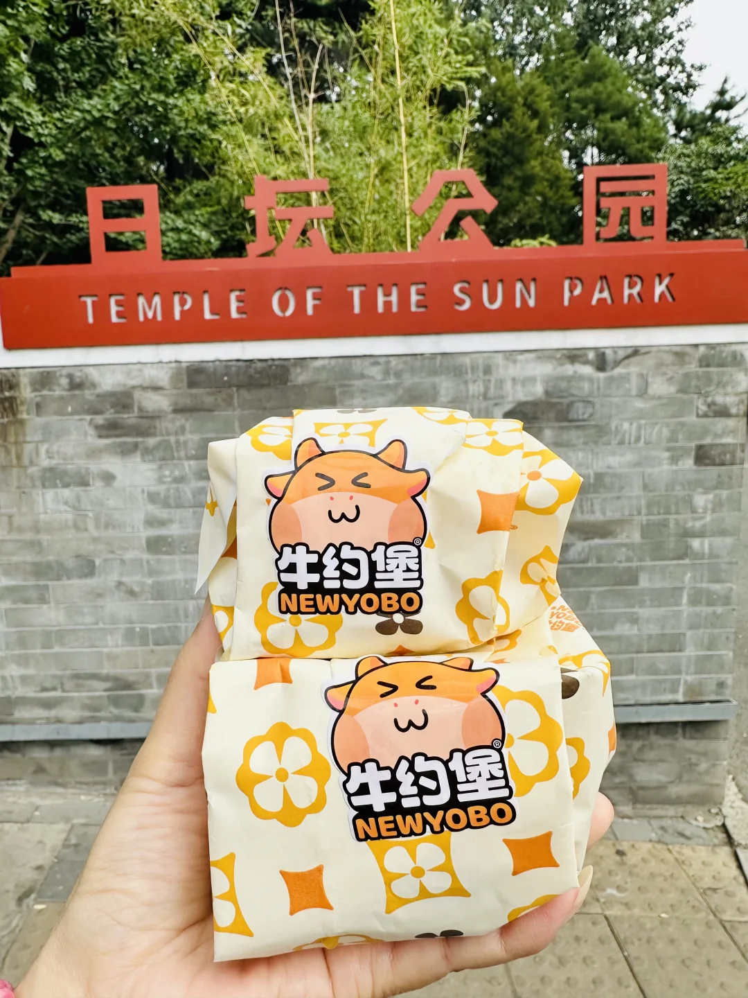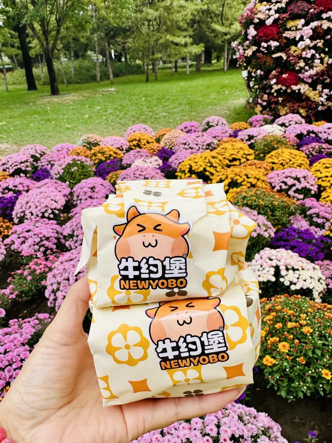 国庆节来日坛公园看菊花展🌼 被五颜六色的花海美到失语,又渴又饿,点了**牛约堡·手作牛肉汉堡(东直门店)**的外卖,20分钟送到,直接把我香迷糊了。😍