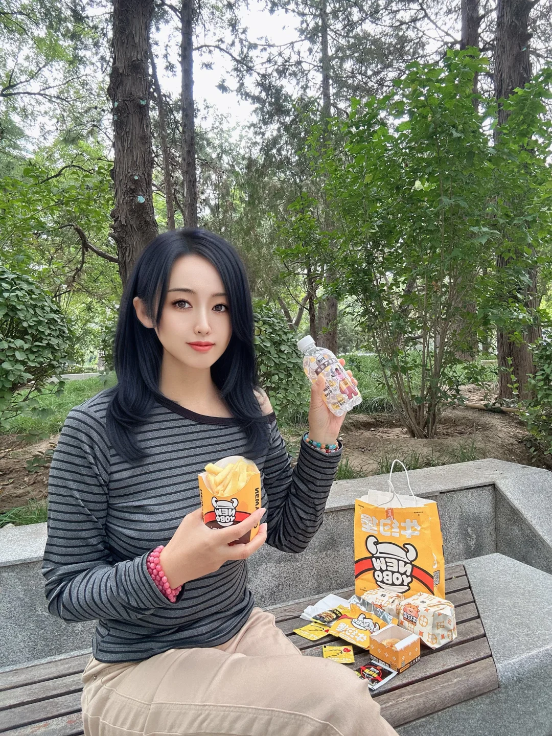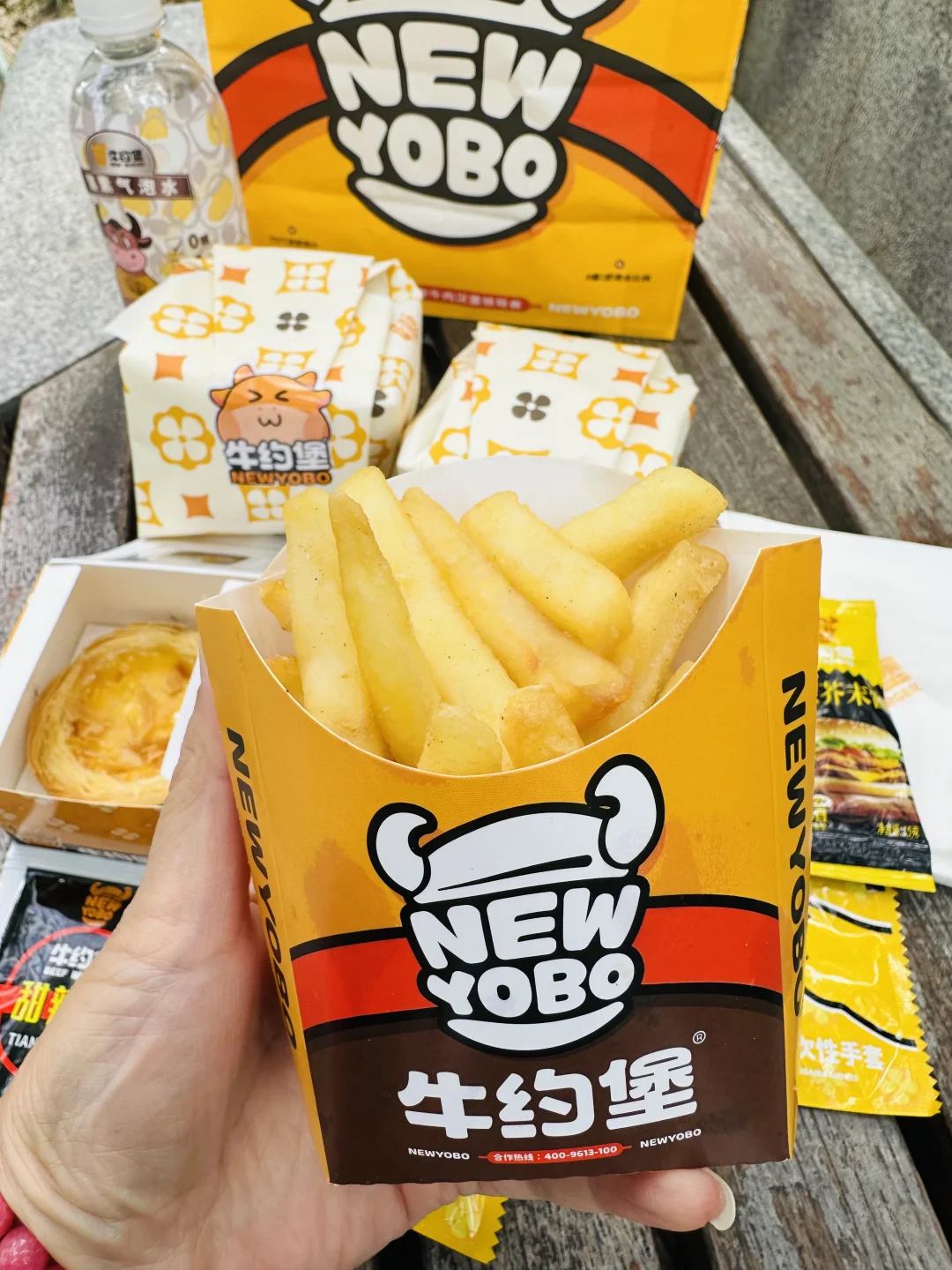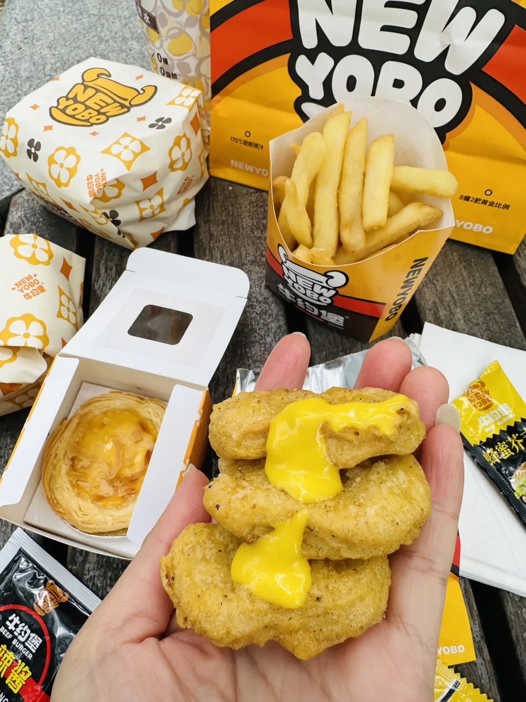 美式粗薯外脆内绵,蘸蜂蜜芥末酱绝绝子🥔;酥皮蛋挞层层起酥,蛋挞液滑嫩到犯规🍮;还有0糖0卡酵素气泡水,逛公园喝它清爽又无负担~