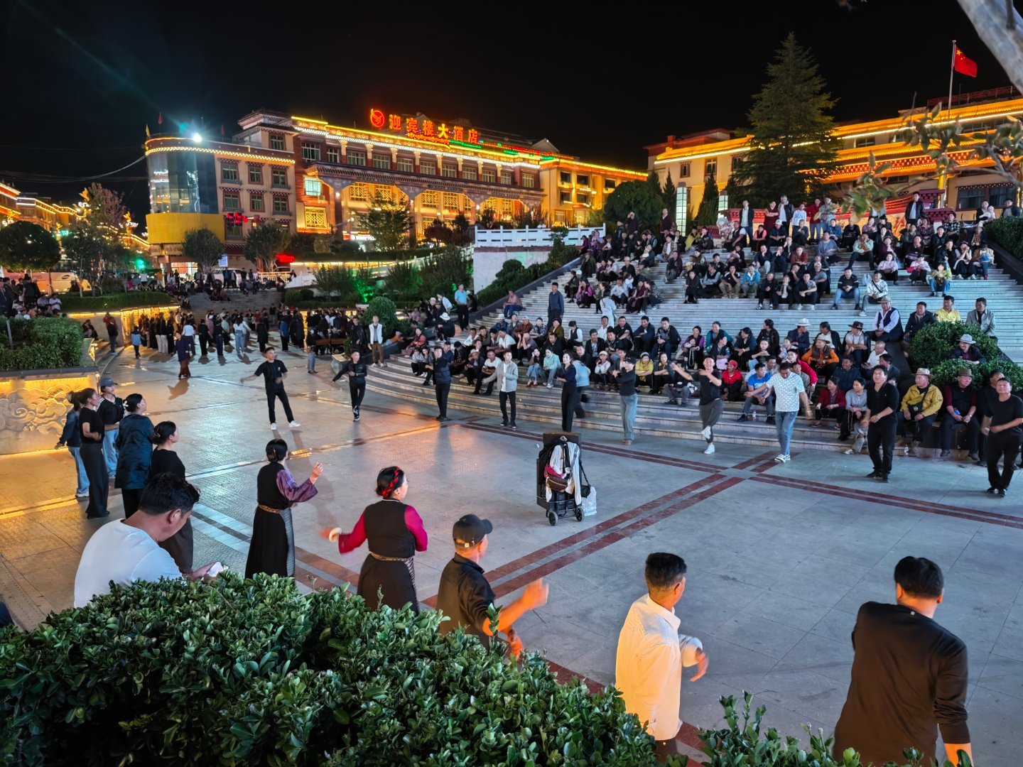 巴塘县城好繁华,到处都是酒店和饭店,这里海拔只有2000多,气温也舒服,现在24℃。路过广场,当地人已经吃完饭在跳舞了,气氛可真好。