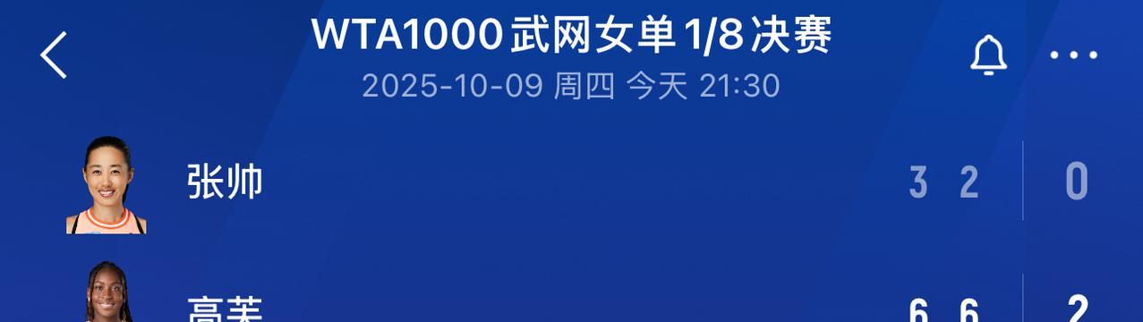 今晚,WTA1000武网1/8决赛开打,中国网坛常青树——张帅,迎来了WTA单打排名第三、2023美网冠军、2024年终总决赛冠军、2025年法网冠军、比自己小15岁的美国网坛“一姐”高芙的阻击。 比赛结果很正常,张帅以3:6、2:6大比分0-2输了,止步于武网十六强,也是中国女子网球运动员本届赛事的最好成绩。 比赛过程很励志,张帅底线左右奔跑、网前上下截击,不知疲倦、永不懈怠…… 张帅的球技可能不是中国球员中最好的,但她的比赛态度、比赛品格、比赛气质、比赛精神绝对称得上是顶尖的!这也是张帅在国内外网坛能够始终受人尊重和爱戴的原因所在。 张帅,愿你身体保持的健健康康的,可以再多给我们奉献一些网球场上的精彩!这就是我们最大的期待和幸福![鼓掌][鼓掌][鼓掌]