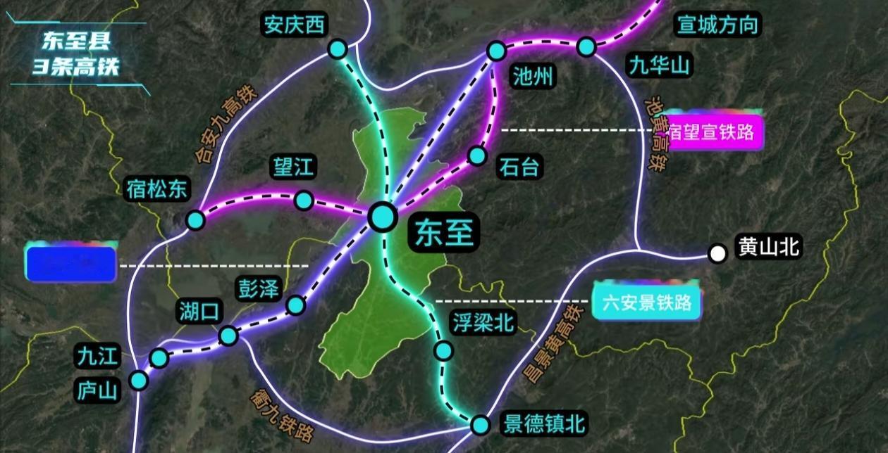 安徽东至规划的这三条高铁,你认为哪条机会比较大呢?安徽高铁 第一条,宿望宣铁路,设计时速250KM/h,起点于宿松东,途经望江、东至、石台、池州、九华山、最终到达宣城 ;皖赣沪高铁 第二条,池九高铁,设计时速350KM/h ,起点于庐山,途经九江、湖白、彭泽、东至、到达池州;第三条,六安景铁路,设计时速250KM/h,起点于安庆西、途经东至、浮梁北,到达景德镇北。