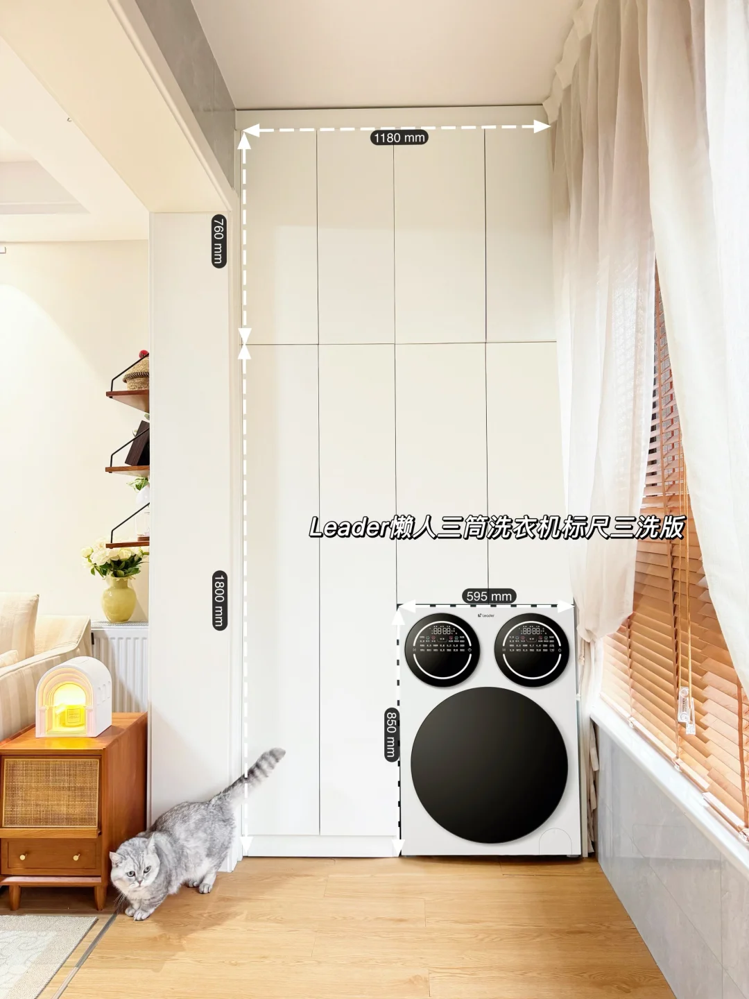 说到阳台柜里的“核心成员”,就不得不提我家这台Leader懒人三筒洗衣机标尺三洗版了。作为第一波收到产品的消费者,试用了几天,它的表现完全超出了我的预期,说是帮我解决了带娃+养宠的家务难题一点都不夸张。
