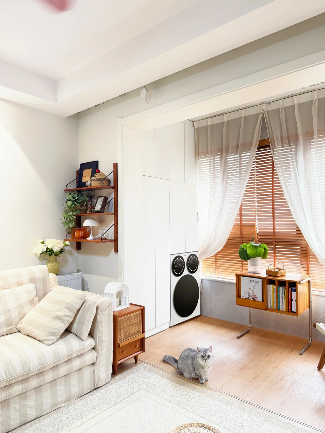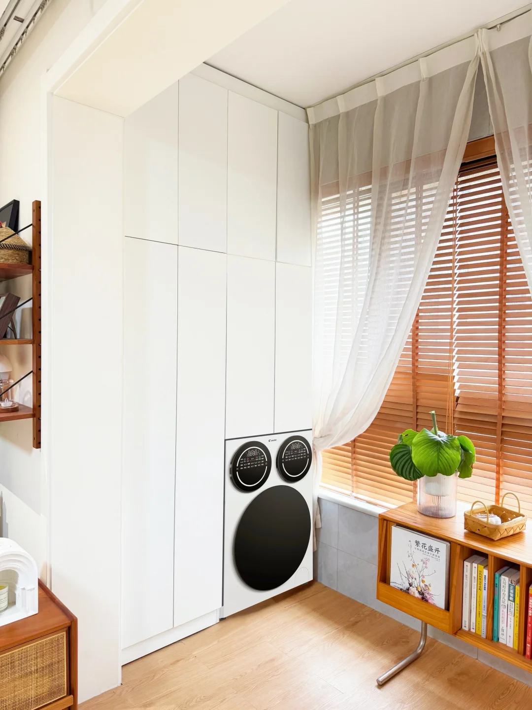 右边放置洗衣机,上方还能收纳各种日用品囤货,既实用又美观