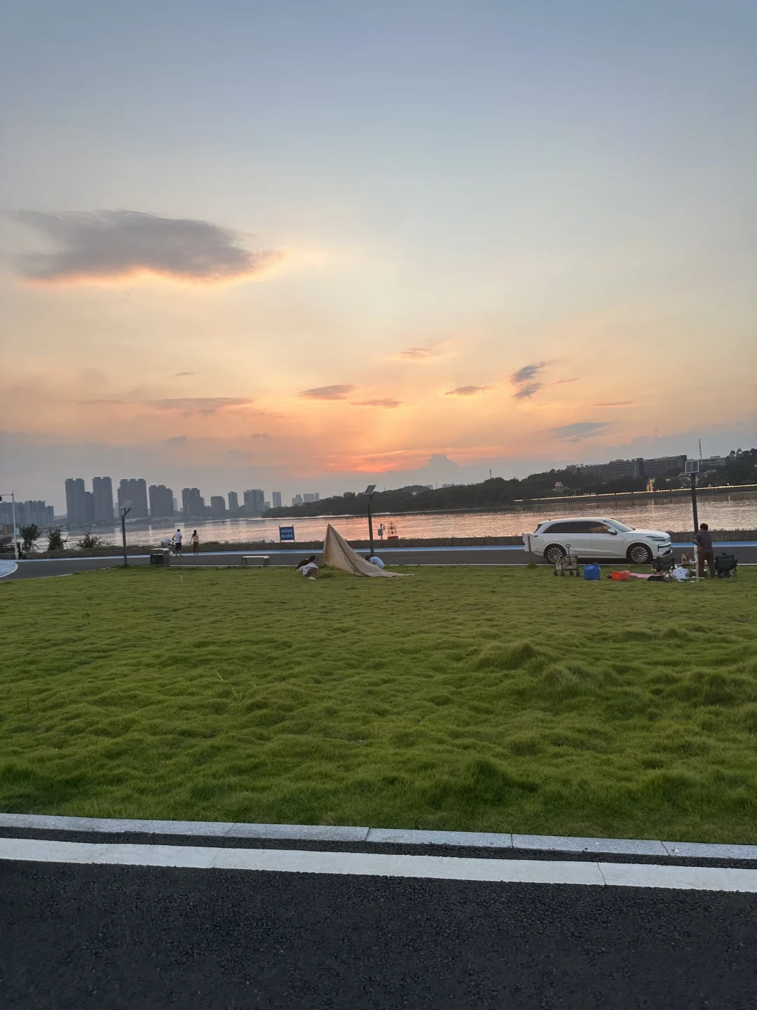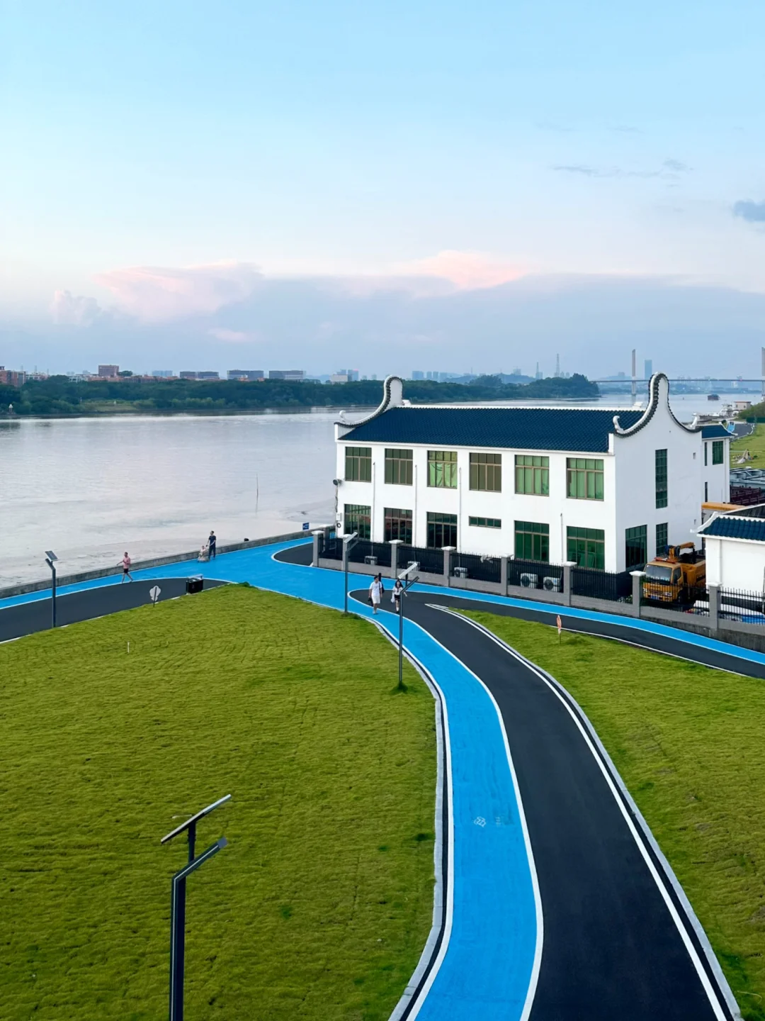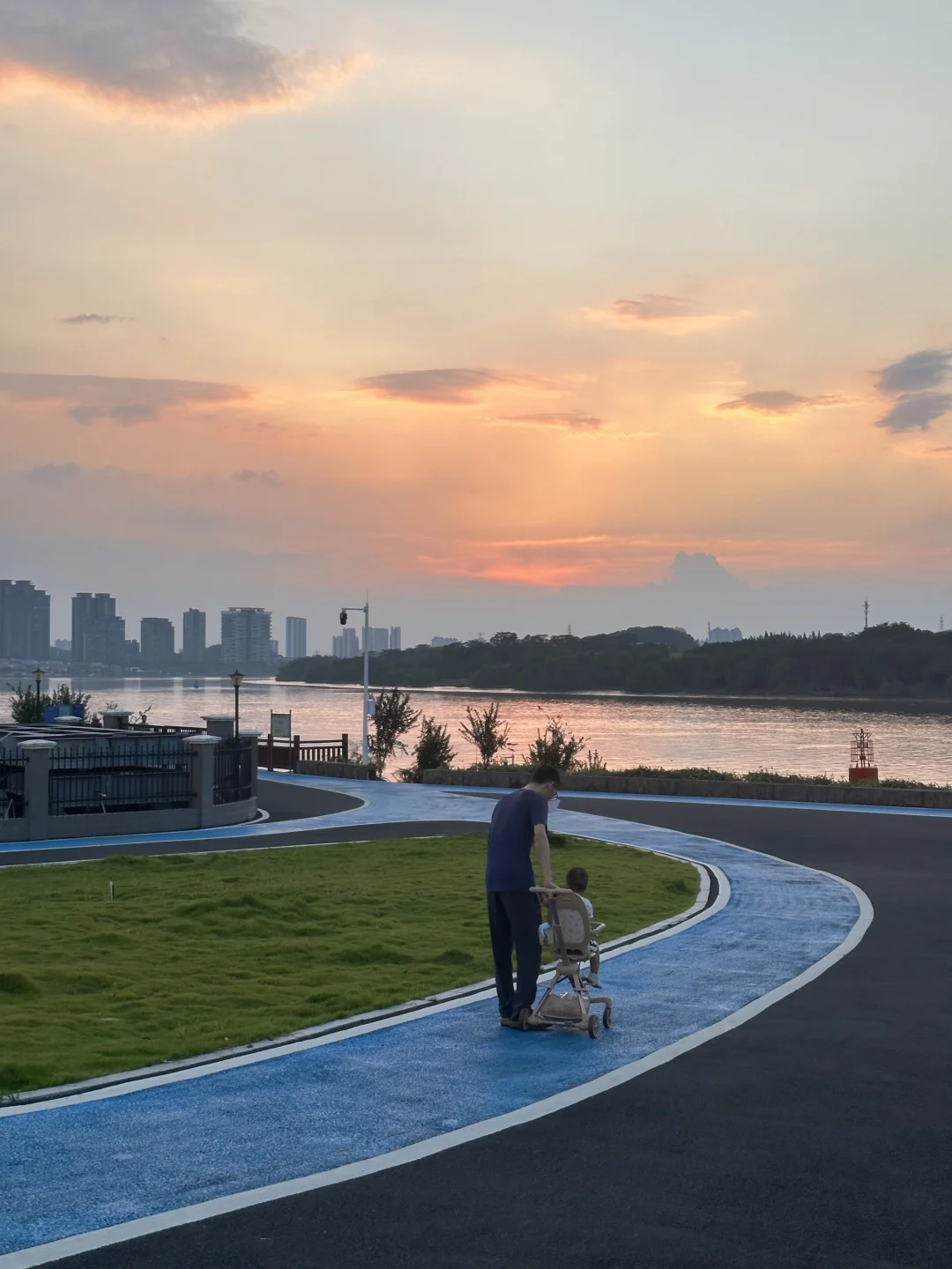 这里有一大片绿油油的草坪,2km的临江绿道,好适合骑行和玩滑板!没什么人和车!!大草坪上野餐、遛娃、遛狗、钓小螃蟹、江边看日落,好惬意!完美避开人流!