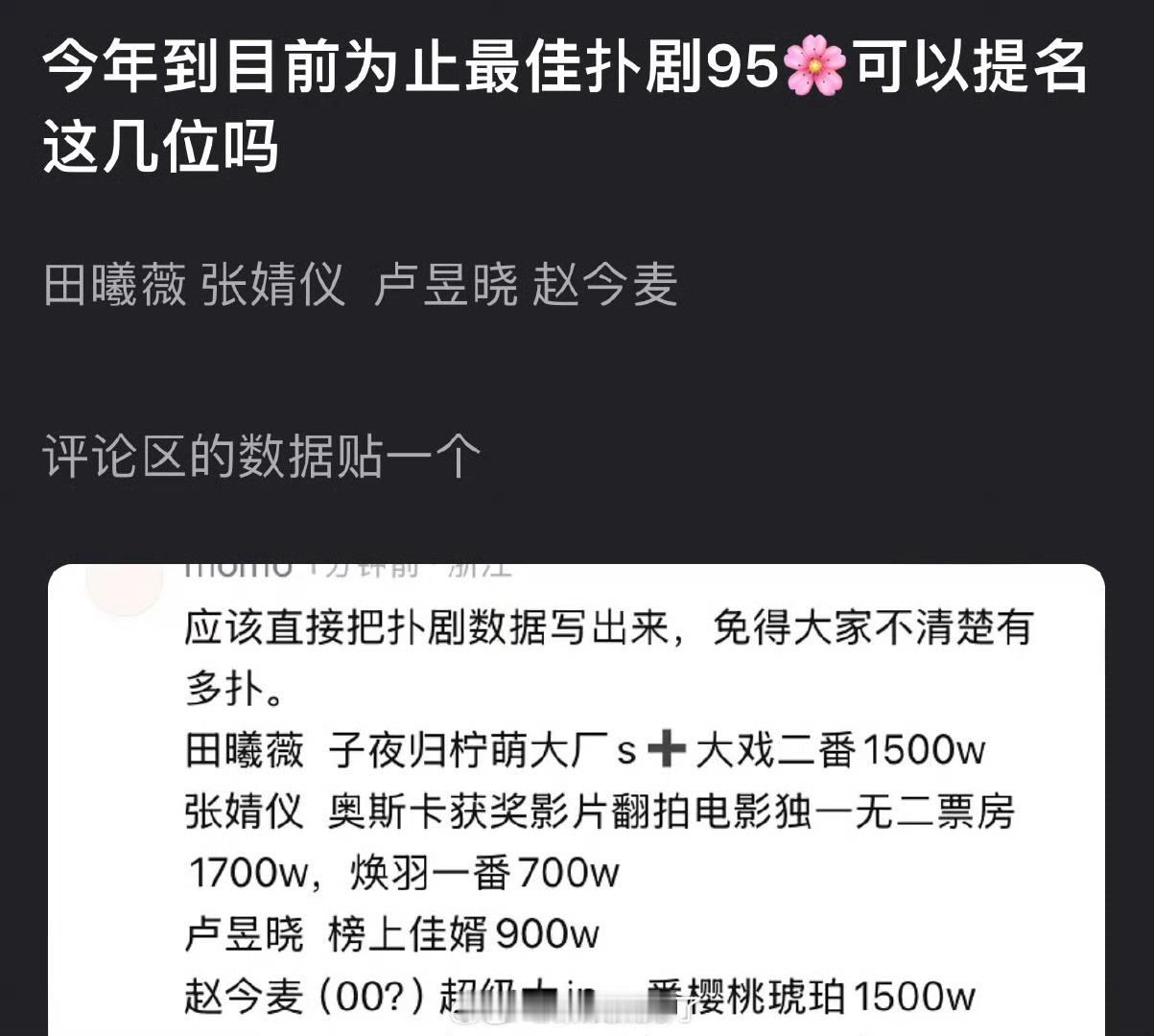 来看下今年到目前为止最佳的四大扑剧95🌸,大家认同吗?田曦薇 张婧仪 卢昱晓