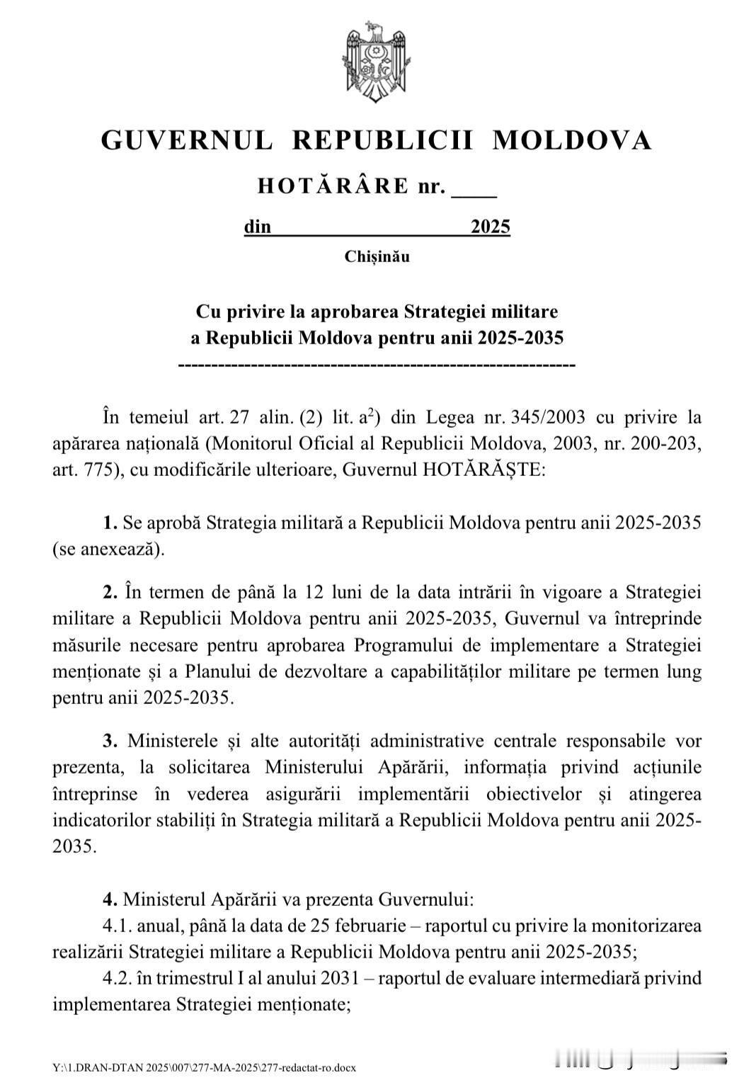 🇲🇩摩尔多瓦批准2035年前军事战略 10月8日,摩尔多瓦共和国政府批准