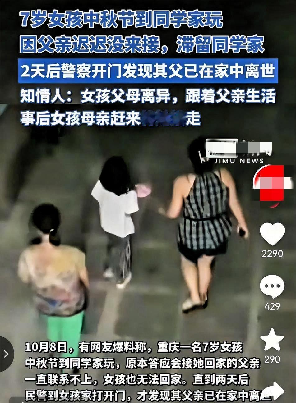 太让人难受了! 7岁小女孩还等着爸爸来接, 不曾想她的父亲早已倒在出租屋内,再也醒不过来了。 中秋那天,7岁娃去同学家玩,爸爸一直没去接,她就在同学家滞留了两天。 后来警察上门,才发现孩子爸爸已经在出租屋里去世了。 妈妈来接孩子时,娃还懵懵懂懂的,不知道爸爸为啥不在了。只愿孩子爸爸能安息,也盼着这孩子能慢慢从悲伤里走出来。 爸爸猝然离世让女儿滞留,藏着成年人忽视健康的隐患。肩负家庭责任时,关照自己身体,才是对家人最基本的守护,别让意外打碎团圆。 生命是脆弱的,也是生命的尽头,最好有个善终。 生命中有很多事情是无法预料的,生命也一样,应该多多关心自己的家人,留有余地,不要等到失去了才后悔。 别让“来不及”成为遗憾,珍惜和家人相处的每一刻,好好照顾自己,就是对家人最大的负责。你有没有过特别想珍惜的当下?来评论区说说!