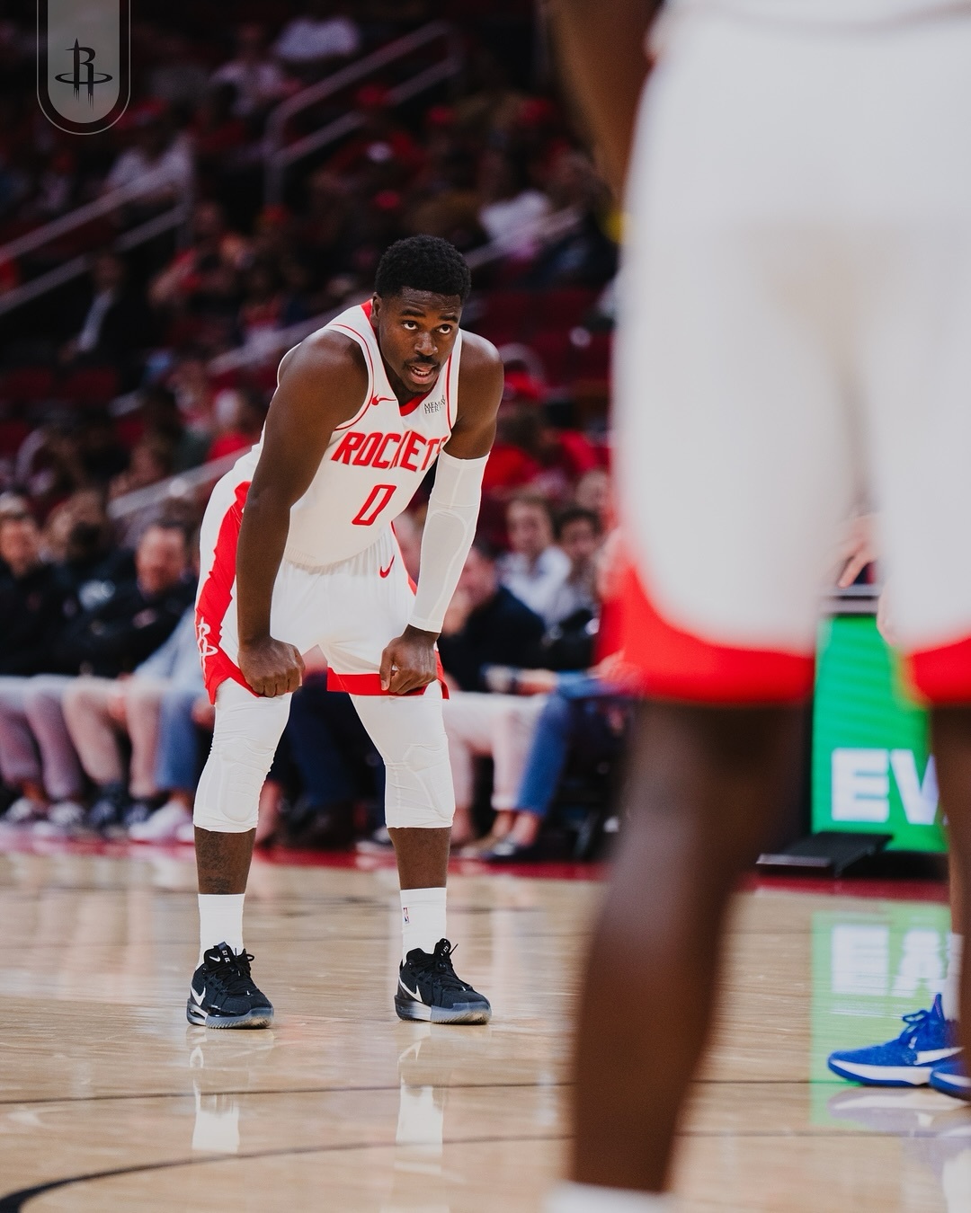 谢泼德在与独行侠队的比赛里表现实在一般,第一节后半段,作为火箭队替补后卫的谢泼德