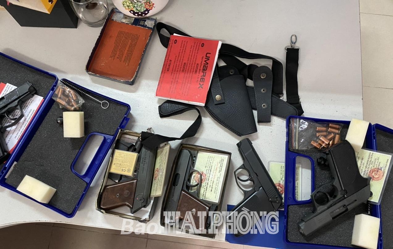 越南一电子信息通信股份公司主动上交的5支枪支。因为该公司武器使用许可证到期,需要重新核发许可证