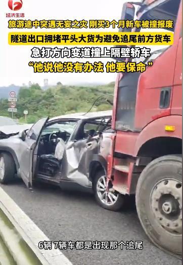 “选择性撞车!”湖南,男子刚买3个月的新车被大货车撞报废。而货车司机员表示:“我没有办法,刹不住了,我要保命,不变道就直接追尾前方大货车了”!男子:“你是保了命,但你有没有考虑过我们车上人的命?” 高速上的一声巨响突然划破十一假期的晴空,紧接着是金属扭曲的刺耳声和玻璃碎裂的脆响。 重庆何先生握着方向盘的手猛地一紧,刚买三个月的新车就被一股巨大的力量从后方狠狠撞击。 车身像失控的陀螺一样往前冲,最终重重撞上前方车辆,一连串碰撞声中,七辆车像多米诺骨牌般接连受损,碎片飞溅到挡风玻璃上,吓得副驾上的孩子哭出声来。 事情要从何先生的家庭自驾游说起。 这个十一,他特意开着用积蓄新买的轿车,带着妻子和孩子去湖南游玩,出发前还特意给车身做了保养,满心期待着旅途的欢喜。 事发时,他正按规定在高速中间车道正常行驶,时速稳定在100公里左右,完全没料到危险会突然降临。 就听见后方传来刺耳的刹车声,还没反应过来,后背就被狠狠推了一把。 何先生回忆时声音仍在发颤,他下意识踩死刹车,但巨大的惯性让车子根本停不下来,顶着前车又滑行了好几米才停下。 等何先生惊魂未定地拉开车门,眼前的景象让他心疼得说不出话。 新车的车尾已经完全凹陷,后备箱盖被撞得翘了起来,车身侧面布满划痕和凹陷,发动机舱冒着白烟,彻底成了一堆废铁。 更让他愤怒的是,肇事货车司机的解释竟是“我没办法”。 这位司机坦言,自己驾驶的平头货车正跟着前方另一辆大货车行驶,发现距离太近时已经刹不住了,“要是直接追尾,我这平头车肯定撞得最惨,我只能变道”。 这话瞬间点燃了何先生的怒火,你为了自己活下来,就不管我们一车人的死活?要是冲击力再大一点,我老婆孩子怎么办? 货车司机口中的“刹不住”,本质上是高速驾驶中最基础的安全准则被忽视了。 根据2024年实施的高速限速新规,货车在高速上的最高时速不得超过100公里,且必须与前车保持足以采取紧急制动措施的安全距离。 而这位司机显然既没控制好车速,也没留足安全车距,才让自己陷入“要么撞前车要么撞小车”的两难境地。 更关键的是,作为专业货运驾驶员,他本应具备预判风险的能力,却把“本能反应”当成了推卸责任的借口。 就像中国法院网曾报道的一起案例中,司机为避让横穿马路的小孩连续变向,最终撞死路人,法院认定其虽属紧急避险。 但因损害与保护的利益相当,构成避险过当需担全责。 从法律层面看,货车司机的“选择性撞车”绝非“本能”就能免责。 我国《民法典》明确规定,紧急避险采取措施不当或者超过必要限度,造成不应有的损害,避险人要承担民事责任。 他为了保护自身生命,选择撞击载有三名乘客的小车,可能造成的损害并不小于追尾前方货车的风险,显然超出了合法避险的范围。 这意味着何先生的新车报废损失、其他车辆的维修费用,以及家人受伤的医疗费,都得由货车司机或其保险公司赔偿。 如果事故造成了更严重的伤亡,他还可能涉嫌交通肇事罪,面临扣分、罚款甚至有期徒刑的处罚。 有网友觉得这是“故意伤害”其实并不准确,司机主观上并非想伤人,更可能被认定为过失,但过失同样要承担法律后果。 事件曝光后,网友的讨论分成了几派。 有人建议把货车驾驶位改成大巴车那样的低姿态,因为高坐姿虽然能获得开阔视野,但车身周边盲区更大,低坐姿反而能倒逼司机更谨慎驾驶。 也有人愤怒表示“不能让小车当大车的保险杠”,认为司机前期不控速、不保持车距,出事后却让无辜者买单,必须严惩。 还有人坦言“换我可能也会躲”,承认生命面前的自保本能。这些讨论恰恰说明,高速安全从来不是简单的“对错题”,而是关乎规则、技术与人性的“综合题”。 在这场“保命”与“他安”的冲突中,最该被重视的是生命的平等尊严。 何先生的新车不仅是一件财产,更是承载家庭出游梦想的载体;其他被撞车辆的背后,也都是一个个期待平安的家庭。 货车司机的方向盘上,握着的不仅是自己的性命,还有路上所有行人与车辆的安全。 专业驾驶员更该明白,高速上的每一次变道、每一脚刹车,都连着无数家庭的幸福,不能把自己的生命权重凌驾于他人之上。 信息来源:AHTV第一时间2025-10-07发布视频