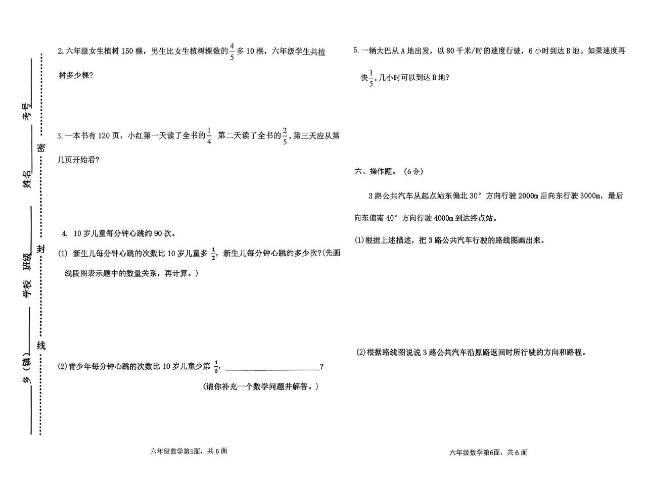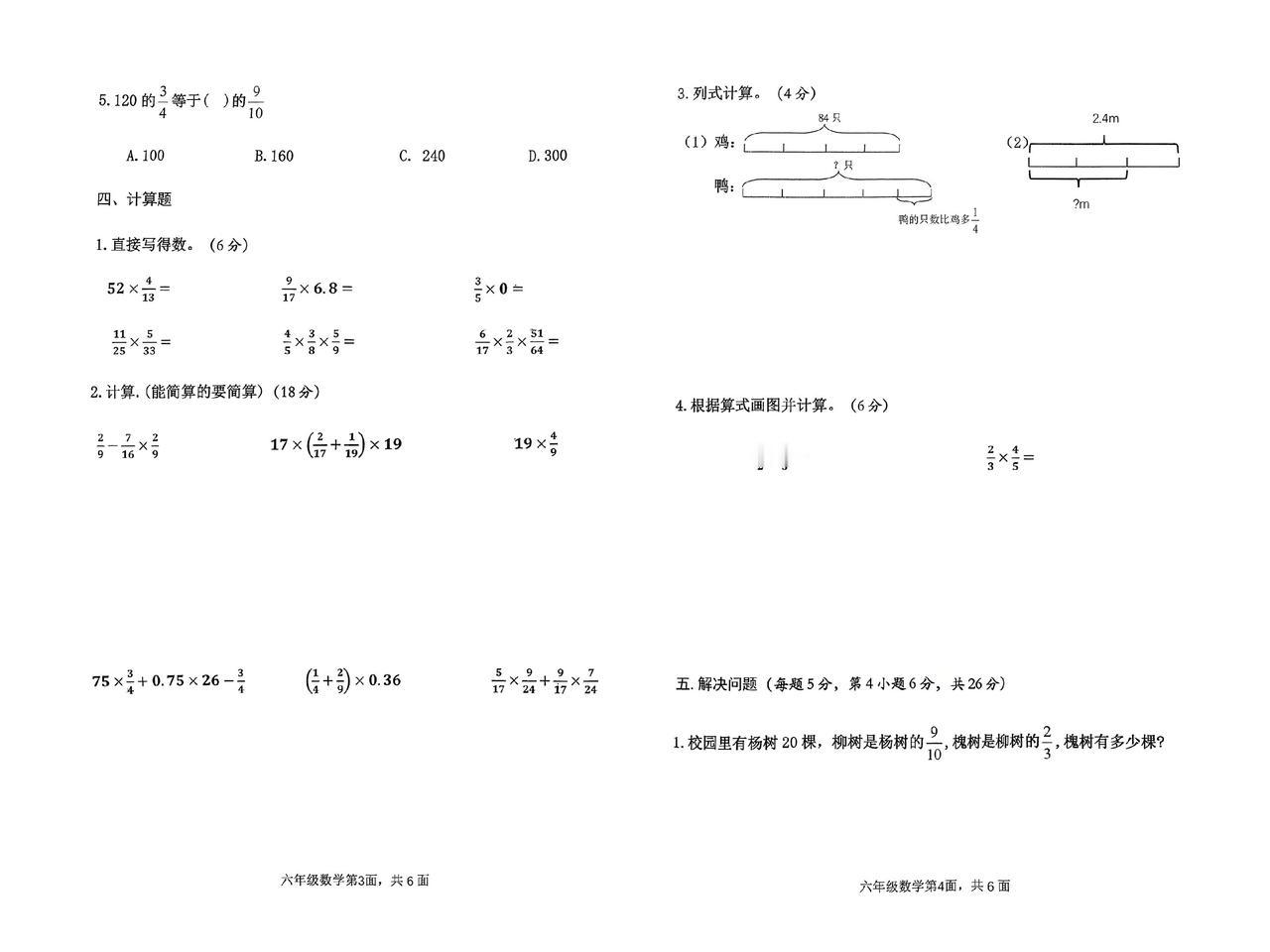 六数上,2024第一次月考试卷#小学试卷分享