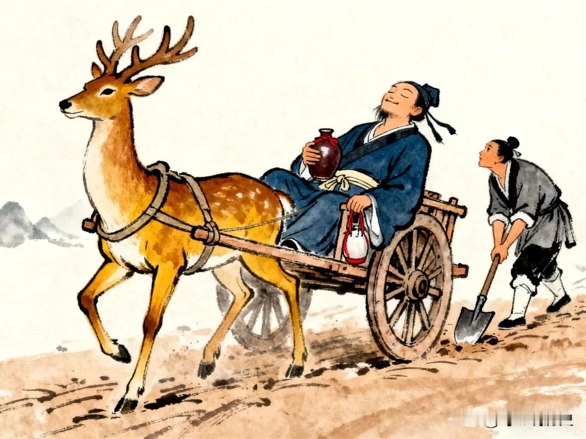 有客来访竹林七贤,却发现刘伶瘦削的身体一丝不挂地横在客厅中央,惊得推门而入的友人连连后退。 “你、你这是在做什么?” 刘伶醉眼朦胧地抬起头,嘴角浮起一丝若有若无的笑:“天地是我的房屋,这间屋子就是我的裤子。诸位怎么自己钻到我裤裆里来了?” 这不是疯癫,而是一个乱世名士精心设计的生存哲学。 正当年,魏晋易代的血色黄昏笼罩着整个士林。司马氏的屠刀下,嵇康在刑场弹完《广陵散》从容赴死,阮籍驾车至穷途恸哭而返。活着,成了最奢侈又最艰难的艺术。 刘伶选择了自己的方式。 这个“身长六尺,貌甚丑悴”的矮个子男人,看似终日醉眼迷离,心里却比谁都明白。他做过几天建威参军,当朝廷策问治国方略时,他老老实实回答“尊奉自然”——结果自然是落选。他太清楚了,在那个说错一句话就会掉脑袋的年代,唯有醉乡最安全。 他的妻子为此不知流过多少眼泪。一次她砸了所有酒具,哭着求他戒酒。刘伶说好,但要准备酒肉向鬼神起誓。祭品摆好后,他却跪祝道:“天生刘伶,以酒为名。妇人之言,慎不可听!”说罢饮酒食肉,颓然又醉。这出精心编排的戏码,何尝不是他对这个荒诞世道最温柔的抵抗? 在《酒德颂》里,他描绘了理想中的醉者:“无思无虑,其乐陶陶。兀然而醉,豁尔而醒。”这分明是他为所有心有郁结的士人构筑的精神乌托邦。那个“幕天席地,纵意所如”的“大人先生”,正是他在乱世中精心雕琢的人格面具。 他常常乘着鹿车,带一壶酒,让人扛着铁锹跟在后面,说:“死便埋我。”这看似颓废的言行里,藏着多么深的悲凉与超脱——既然不能决定如何生,至少可以选择如何面对死。 耐人寻味的是,《晋书》记载这个看似放浪形骸的人,实际上“澹默少言,不安交游”。他的狂放是给世界看的,内心的清醒只留给自己。与嵇康的刚烈、阮籍的苦闷不同,刘伶找到了一条属于自己的生存之道——用醉态包裹真心,用荒唐对抗荒谬。 他活到了约八十岁高龄,在那个“天下多故,名士少有全者”的时代,这本身就是一个奇迹。当同时代的名士一个个倒在血泊中,这个终日醉醺醺的矮个子男人,却用他独特的方式,既保全了性命,又守住了尊严。 当我们再次回想那个赤身裸体接待宾客的刘伶,看到的已不是一具血肉之躯,而是一个孤独的灵魂在用最极端的方式,向世界宣告:在礼崩乐坏的时代,真实地活着,就是最伟大的反抗。 他留给后世的,不只是《酒德颂》的墨迹,更是一个在黑暗中依然保持内心光明的姿态——哪怕这光明,需要借助酒浆才能燃烧。在以后漫长的岁月里,每当文人遭遇困厄,总会想起那个驾着鹿车、扛着铁锹的酒徒,和他那句洒脱至极的话: “死便埋我。” 这四个字里,有对生命最深的眷恋,也有对死亡最大的蔑视。而这,正是刘伶穿越千年的力量。