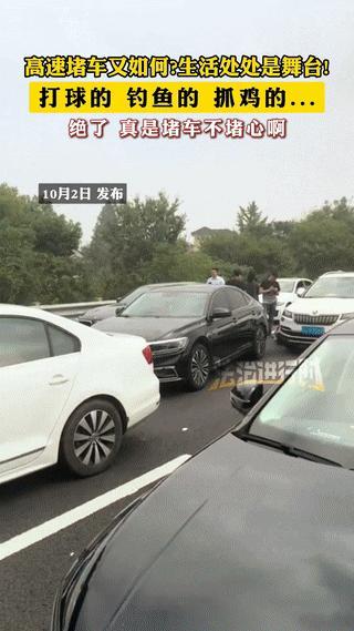万万没想到啊!!!国庆假期,男子开车被堵在高速路上,为了消减等车煎熬的痛苦,竟干