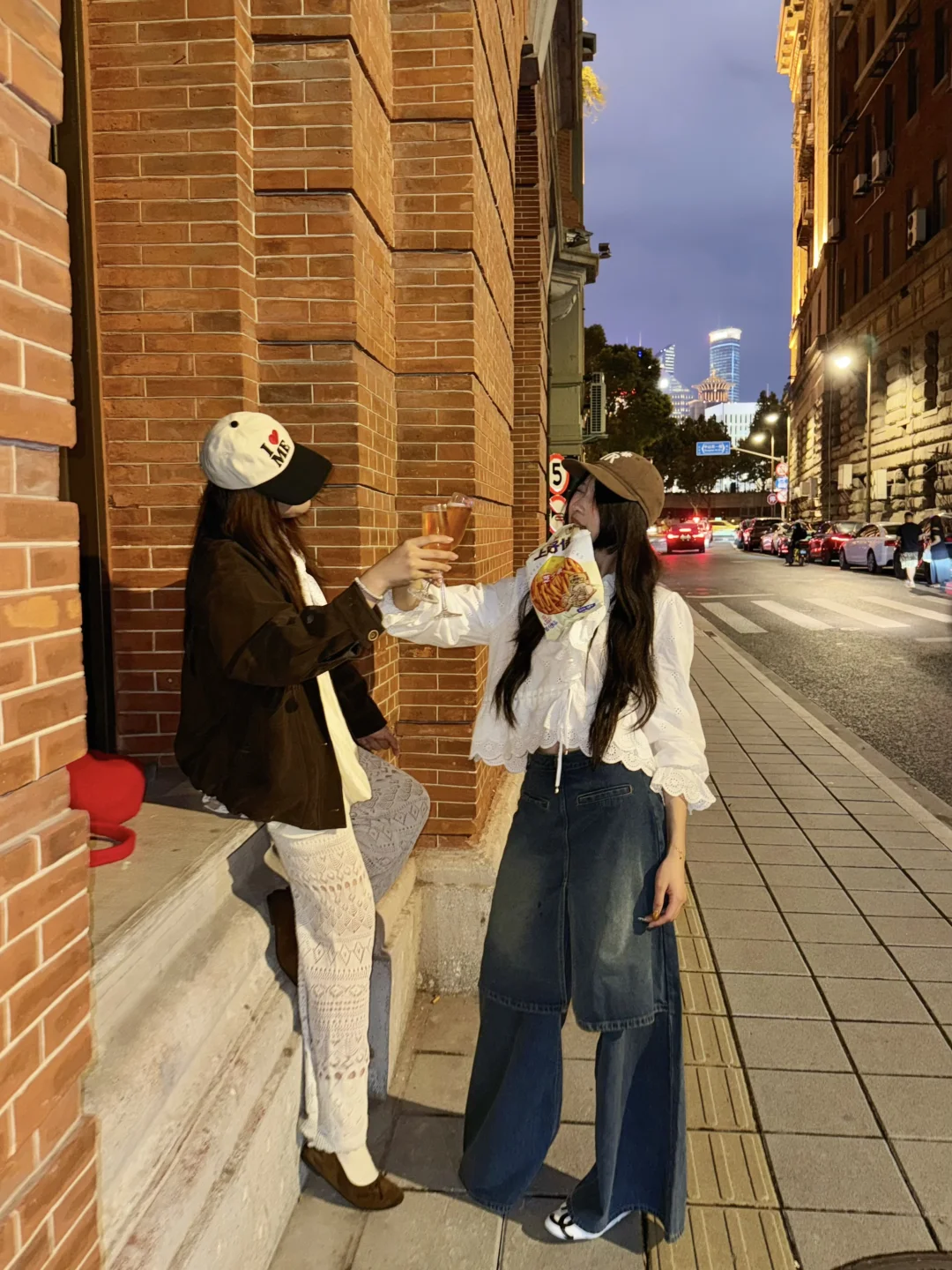 和朋友在上海外滩街头 好喜欢上海的夜晚 太好拍了吧!! 一组很适合好朋友一起拍的ins感拍照姿势 🧥秋天到了 速速换上栗色穿搭 栗子色的外套 很秋天的ootd