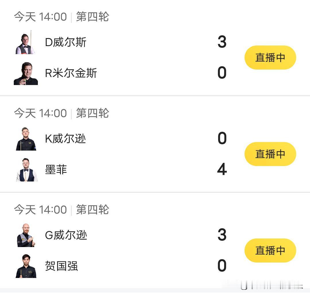 一边倒,这就是斯诺克西安赛今天下午的剧本! 一小时20分钟不到,肖恩墨菲5:0干净利落的拿下凯伦威尔逊,囧哥完全被打的没脾气。 赛前都说墨菲是囧哥的克星,这一下应验了,感觉凯伦威尔逊像是观众一样,任由大嘴一个人表演,看来只能等待奥沙利文收拾墨菲了。 剩下的比赛虽然还没有决出胜负,形势也比较明朗,国强这边也是没有反抗之力,希望不要被剃光头吧! 最后的希望难道又要交给丁俊晖?中国斯诺克太难了。