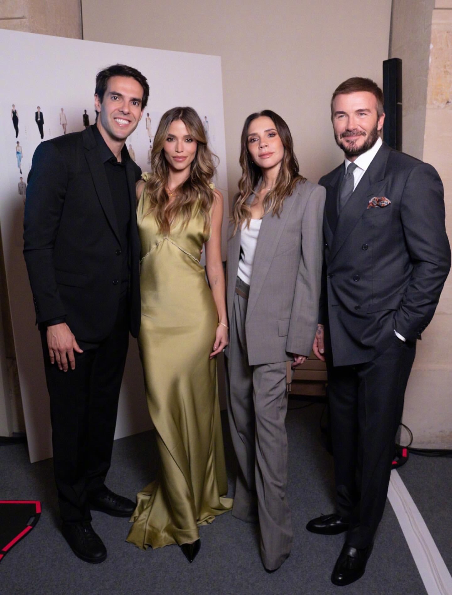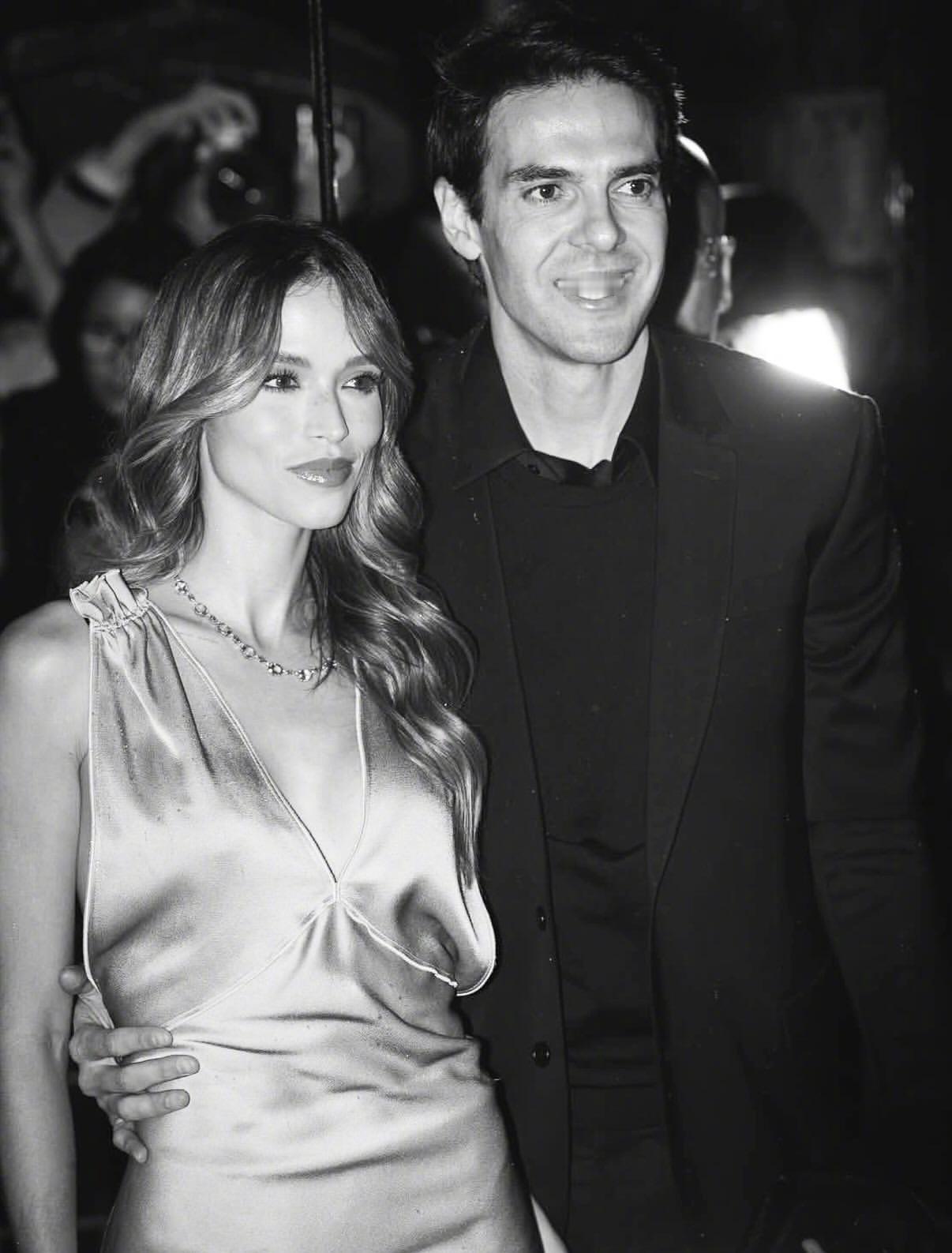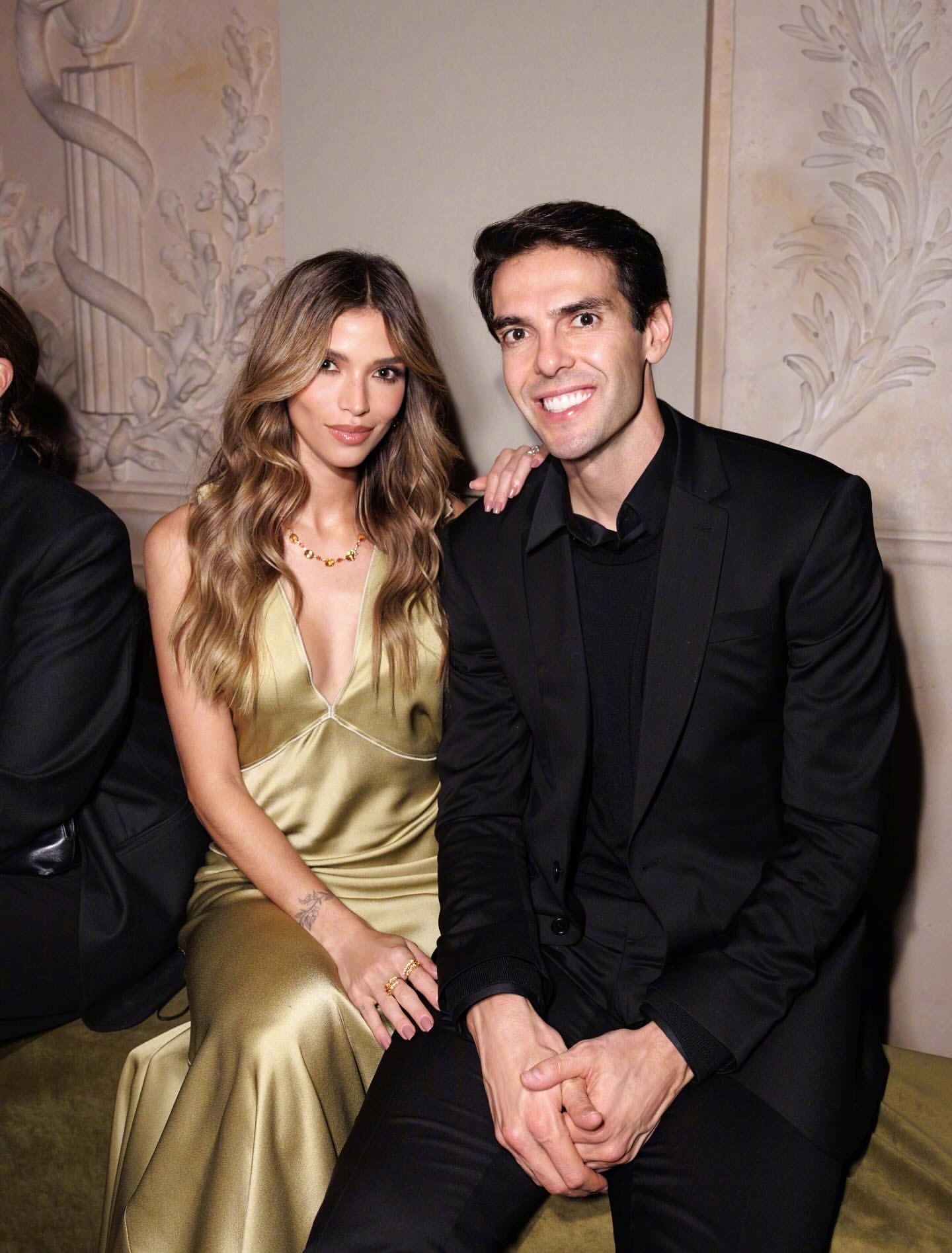 2026春夏时装周 ,出席Victoria Beckham 和爱马仕大秀的球星卡卡和妻子卡罗琳娜·迪亚斯。两位2019年结婚,育有两个女儿。时装周