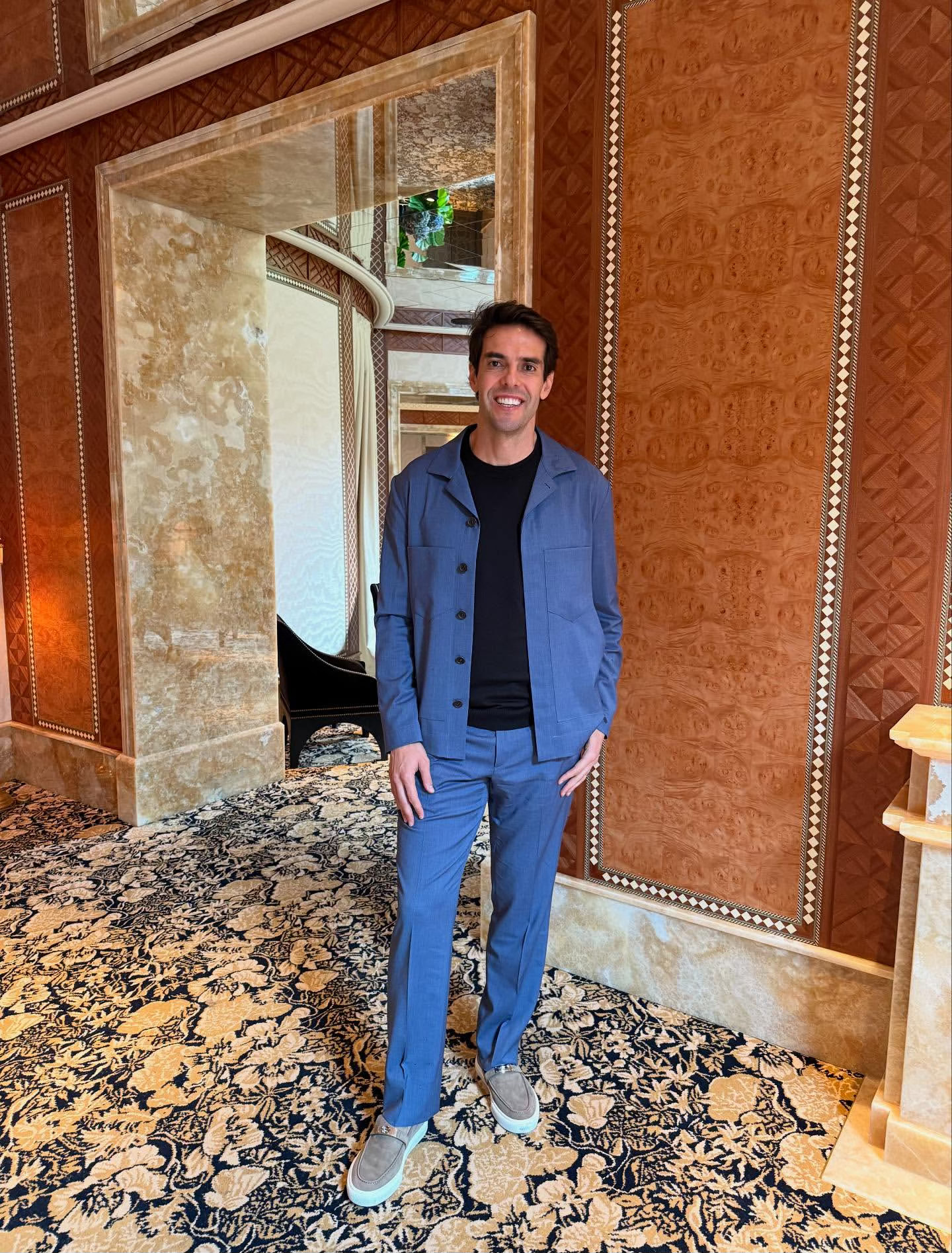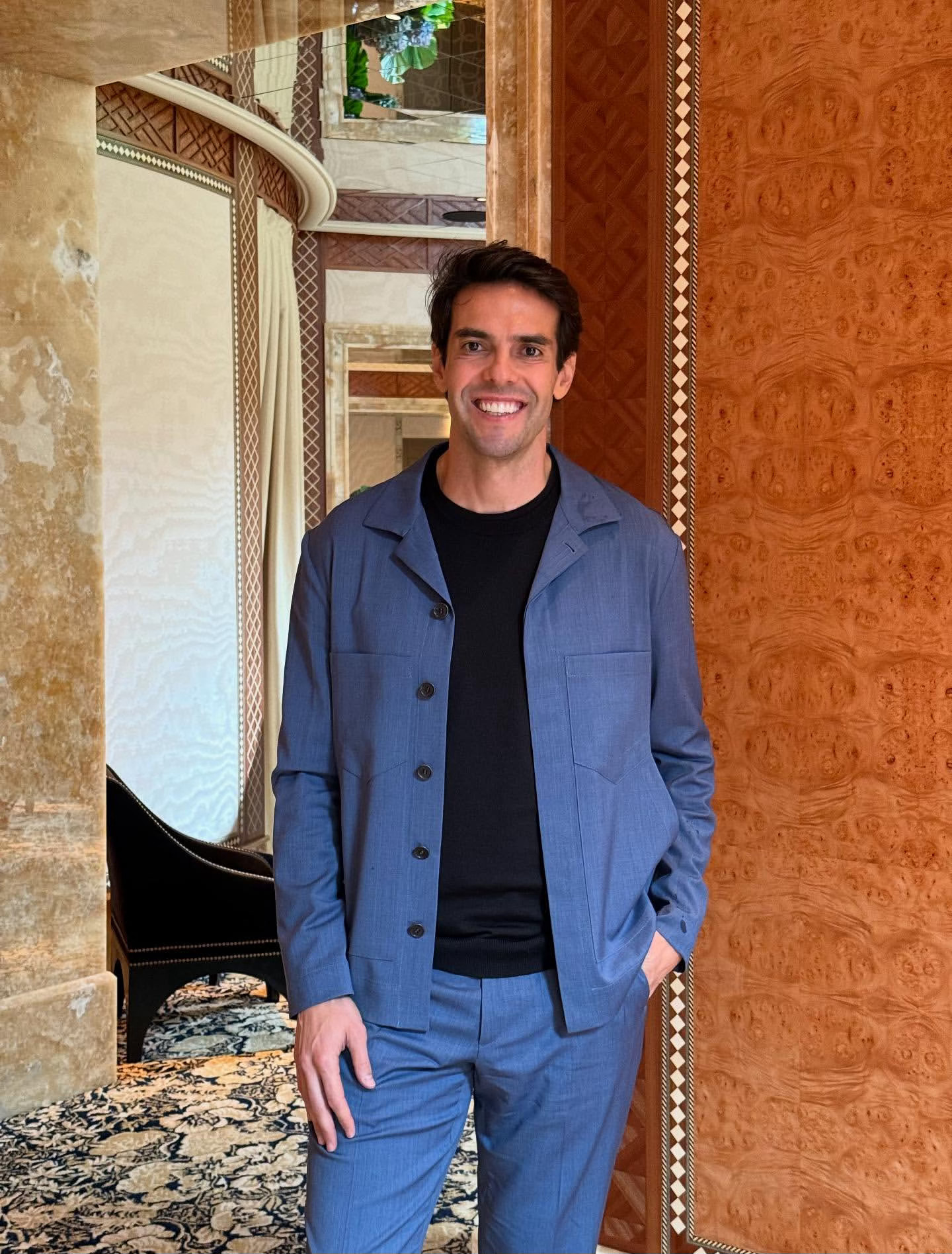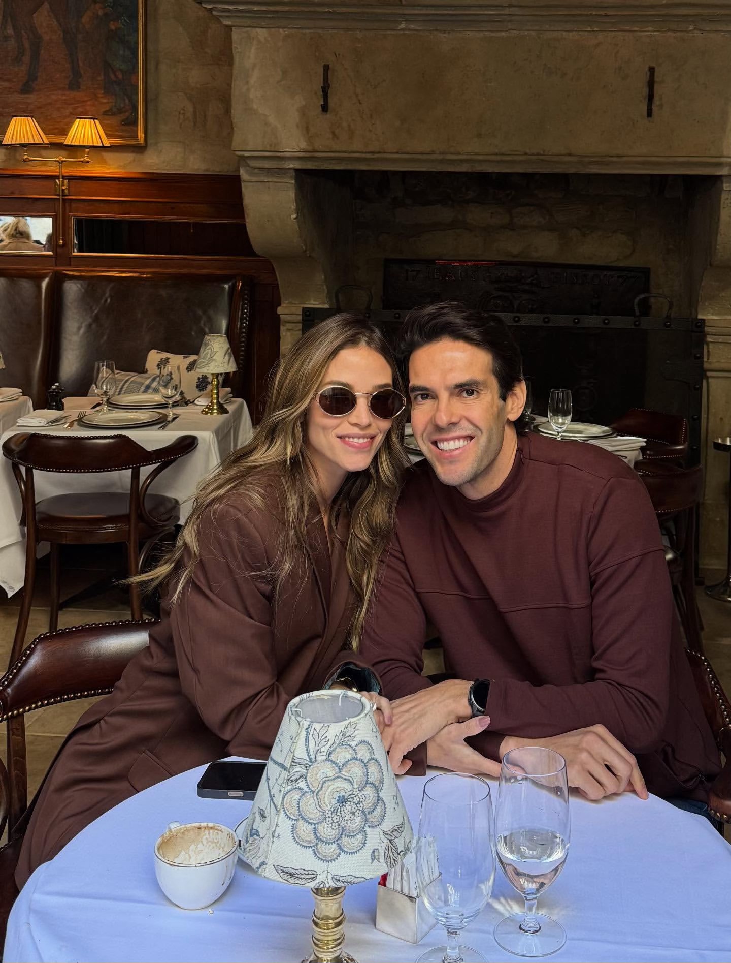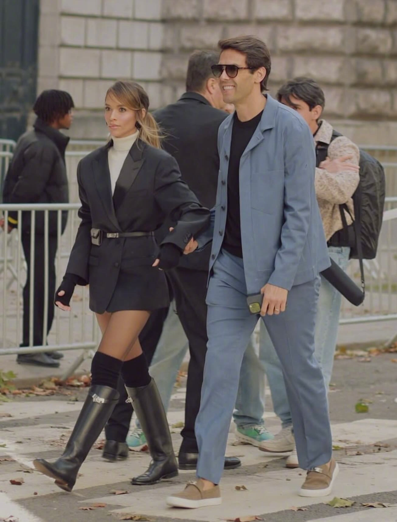 2026春夏时装周 ,出席Victoria Beckham 和爱马仕大秀的球星卡卡和妻子卡罗琳娜·迪亚斯。两位2019年结婚,育有两个女儿。时装周