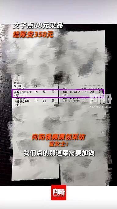 近日,上海,一女子在餐厅点了一份海鲜粉丝煲,本以为一份是88元。 等一小时后,店