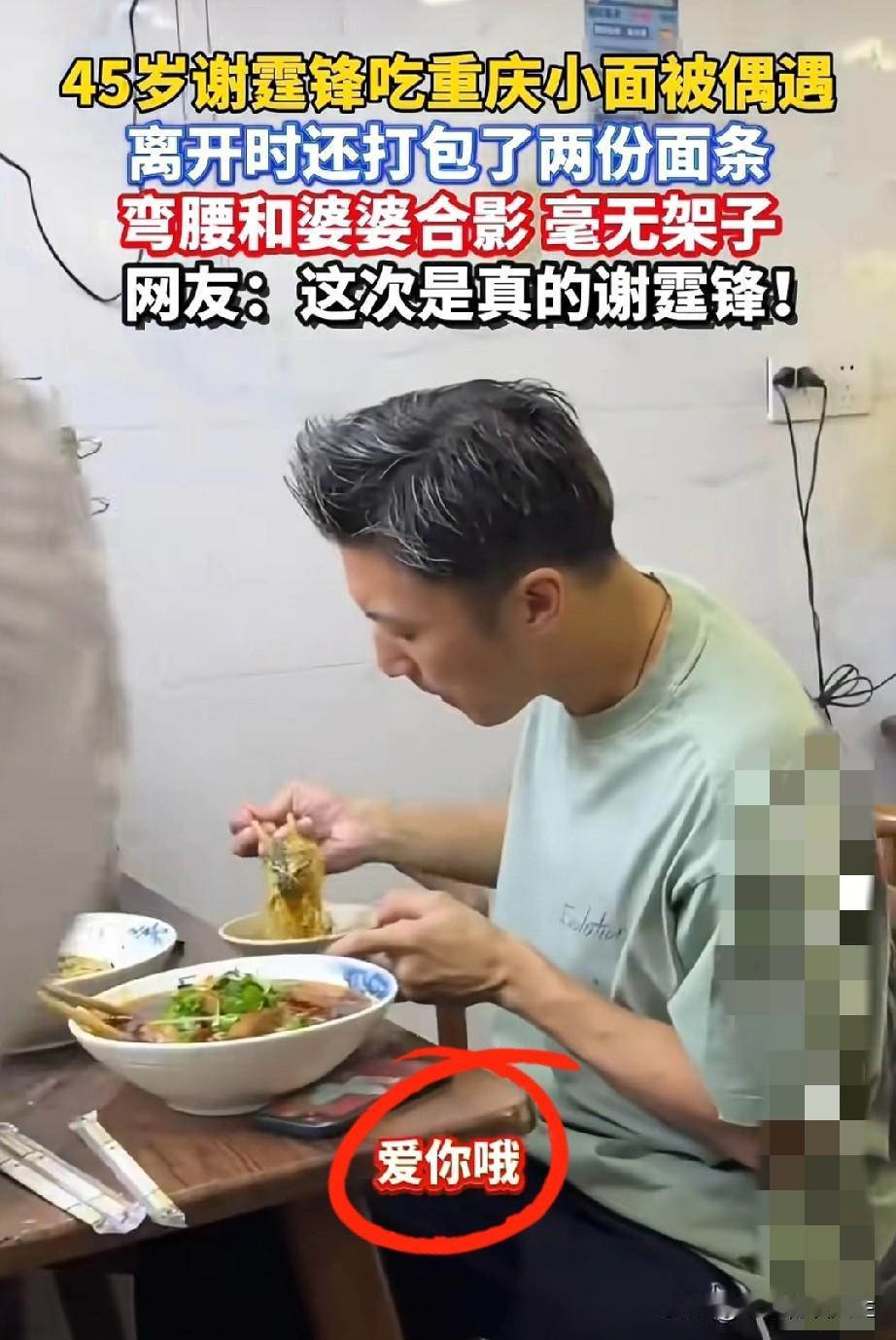 都说王菲不离开谢霆锋? 看他重庆演唱会后这波操作, 才明白,谢霆锋这次重庆演唱会结束,竟然去吃面条,感觉特别接地气! 刚唱完演唱会,没去高档餐厅,转头扎进小吃店吃重庆小面——这接地气劲儿。 他哪像顶流?更暖的是,阿姨要合影,他特意扶着人拍,还帮小店给镜头特写。 哪是“帅气多才”这么简单?是红了这么多年还没丢的烟火气。 王菲向来不恋浮华,偏偏谢霆锋这点“接地气的真”,说不定才是俩人久处的关键。 毕竟爱情里,比起光环,真心待人才更难得。你们觉得,明星的“接地气”,是不是比光环更打动人?一起来评论区聊一聊!王菲