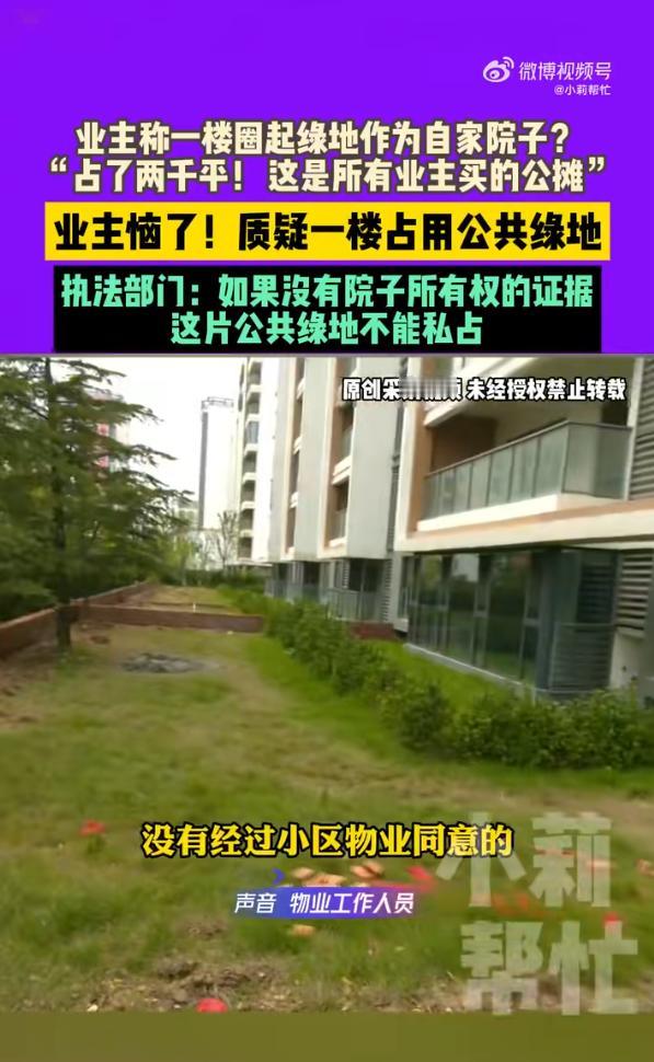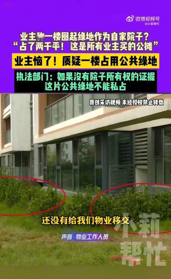 “白嫖翻车了!”10月9日报道,河南周口一小区里1楼的业主在买了房子后,直接把房子外面2000多平米的小区绿化圈占到自己家里,当成了自己的私人院子,小区物业和其他业主阻止后,1楼业主却振振有词,声称是销售卖房的时候说送院子?[熊猫] 河南周口某小区最近闹得挺不愉快,一楼有户人家把小区的公共绿地圈起来当自家院子用,面积大概2000平方米,相当于三个篮球场那么大,其他业主看不下去了,找物业、找执法部门,事情越闹越大。 这事儿一开始没人太在意,那户人家先是用些矮绿植围了一小块地,大家想着也就是弄个小花园,没太当回事,结果人家得寸进尺,慢慢把围的地方越扩越大,后来干脆种上了高大的植物,最后直接砌起了实体墙。 等其他业主反应过来,原本大家遛弯、带孩子玩的那片绿地已经变成人家的“私人领地”了,小区里的公共活动空间一下子少了一大块,谁看了都憋屈。 物业说他们也劝过,但没什么用,那户业主咬死了一句话:当初买房的时候,销售人员口头承诺了送院子,物业也很为难,因为开发商到现在还没把小区的规划图纸正式移交过来,他们手里没有证据,也不好硬来。 这种情况其实挺常见,销售卖房的时候,为了促成交易,什么话都敢说,“买一楼送院子”、“买顶楼送阁楼”、“这块绿地归您用”,听起来都挺诱人,但等你真住进来,才发现这些“赠品”根本不在购房合同里,产权证上也没有。 按照法律规定,小区里的绿地原则上属于全体业主共有,除非在规划时就明确标注归个人所有,执法部门的工作人员也说了,如果那户业主拿不出产权证明,证明这块地确实归他,那这种圈占行为就是违规的,必须拆除。 说白了,就是一个简单的道理:不是你的东西,你不能随便拿,哪怕销售当初真的口头承诺过,没写进合同,没办产权,那也不算数,口头承诺在法律上站不住脚,吃亏的永远是相信“口头协议”的人。 现在这个小区的业主们正在想办法,有人去找开发商要设计图纸,有人去社区和执法部门反映情况,事情要解决,关键还是得把事实搞清楚,按规矩办。 如果销售当初真的承诺过,而且开发商也认账,那这个责任就该开发商来承担,但如果只是业主自己的一厢情愿,那就得老老实实把院墙拆了,把绿地还给大家。 小区是大家的,不是某一户人家的,你想享受独门独院的生活,那就去买别墅,不要在小区里搞这些,买了商品房,就得遵守商品房的规矩,这是最基本的契约精神。 这个小区的事情最后会怎么解决,现在还不好说,但不管结果如何,对所有人都是一个提醒:公共空间是大家的,不能谁占了就算谁的,想要自己的院子,那就在买房的时候就把这个问题解决清楚,别等住进来了再来争。 看到河南周口这个小区的新闻,因为一楼业主圈占公共绿地的事儿,网友们的评论可真是炸开了锅。 很多网友表示,“销售的话怎么能全信呢?” 大家觉得,这种口头承诺最不靠谱,关键还得看白纸黑字的合同和官方的规划图纸。 有网友调侃道:“幸好销售当时没说把整个小区都送给他。” 不少网友注意到,这位一楼业主的行为是一步步升级的,从一开始用矮灌木圈占一小块地,到后来用高绿植围挡甚至砌起石墙,最终圈占了约2000平方米,这相当于三个标准篮球场的大小,这种“试探底线”的做法让很多人感到反感,认为这严重侵占了本属于全体业主的公共空间。 对物业处理能力的担忧:虽然物业表示进行过劝阻,但显然效果不佳,这让一些网友觉得物业“不给力”,希望物业能更主动地联系开发商获取规划图纸,明确绿地属性,并积极协助业主们维权。 那么对于这件事情,您有什么想说的呢? 信息来源:潮新闻