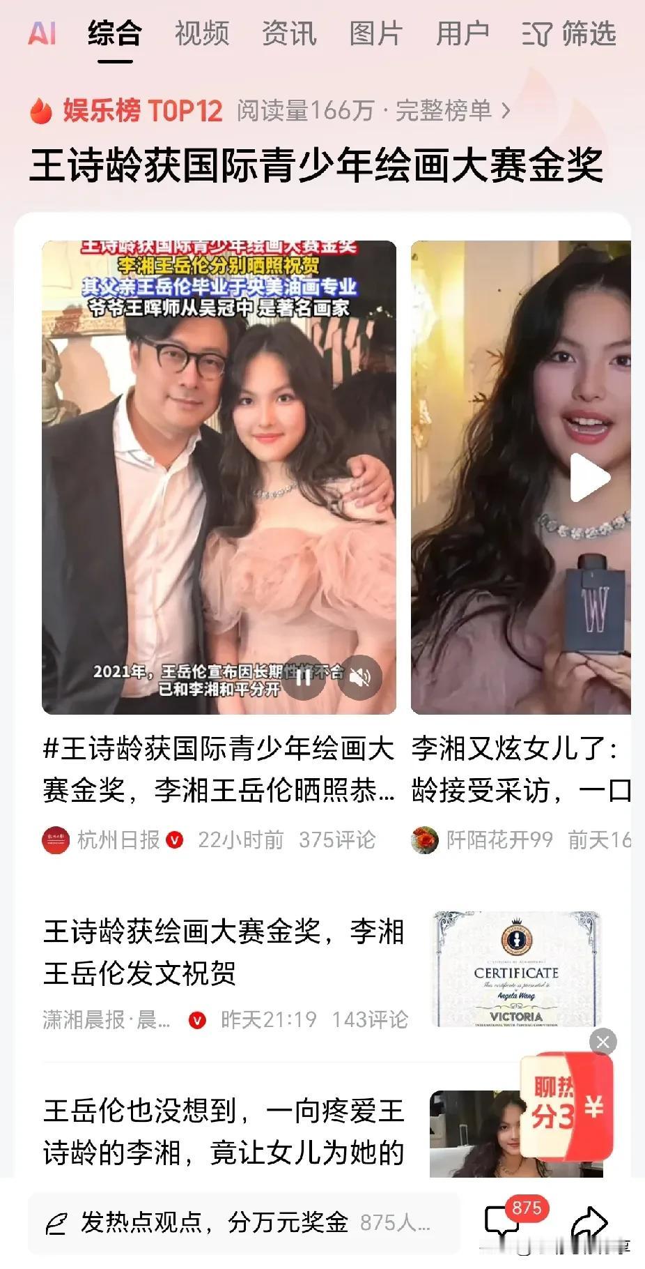 王诗龄能有今天, 现在最应该感谢的, 不是李湘,也不是王岳伦, 而是她的爷爷王晖! 王诗龄的爷爷是中国著名画家王晖 ,1943年生于北京,1968年毕业于中央工艺美术学院,师从吴冠中、卫天霖 。代表作有《五个里程碑》《春江花月夜》《心的激流·巴金》等 ,多被国内外博物馆及收藏家收藏 ,其中《五个里程碑》曾拍出106万元。 他每年为王诗龄画生日画像,从满月至8岁从未间断,画作细腻记录成长,曾有画商高价求购被拒。 在其艺术熏陶下,王诗龄自幼热爱绘画并多次获奖,被认为传承了家族艺术基因。 经常亲自示范绘画技巧,讲解艺术理论和审美观念,这种言传身教让王诗龄在艺术方面进步很快。 在爷爷的影响下,王诗龄选择了艺术作为自己的发展方向,目标是牛津大学艺术系,并一直在为此努力。 不仅爷爷是著名画家,就连奶奶杨洁也是画家,所以说,王诗龄能取得今天的成绩,真的离不开爷爷奶奶从小的艺术熏陶和培养! 真的是,有的人一生的目标就是罗马,而有的人一出生,就已经到了罗马!王诗龄不仅有李湘的培养,王岳伦的爱护,更有爷爷奶奶的艺术熏陶,不想成为画家都难! 大家觉得呢?
