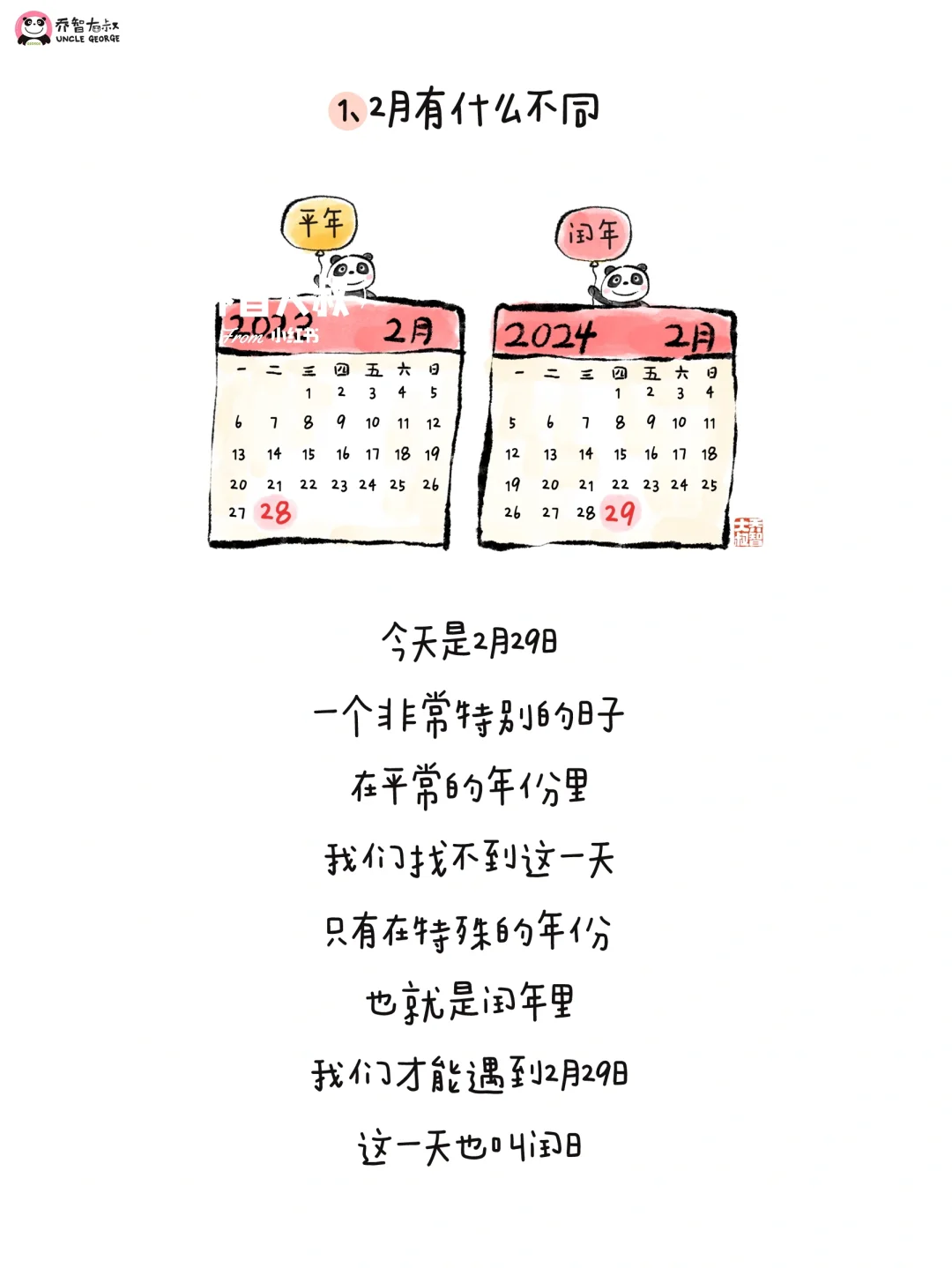 今天是4年一见的2月29日, 给孩子讲讲什么是闰年 小时候都会背的日历歌 赶快给孩子科普一下吧 《日历歌》 一三五七八十腊, 三十一天永不差。 四六九冬三十整, 二月特殊不可忘。 平年二月二十八, 闰年二月把一加。